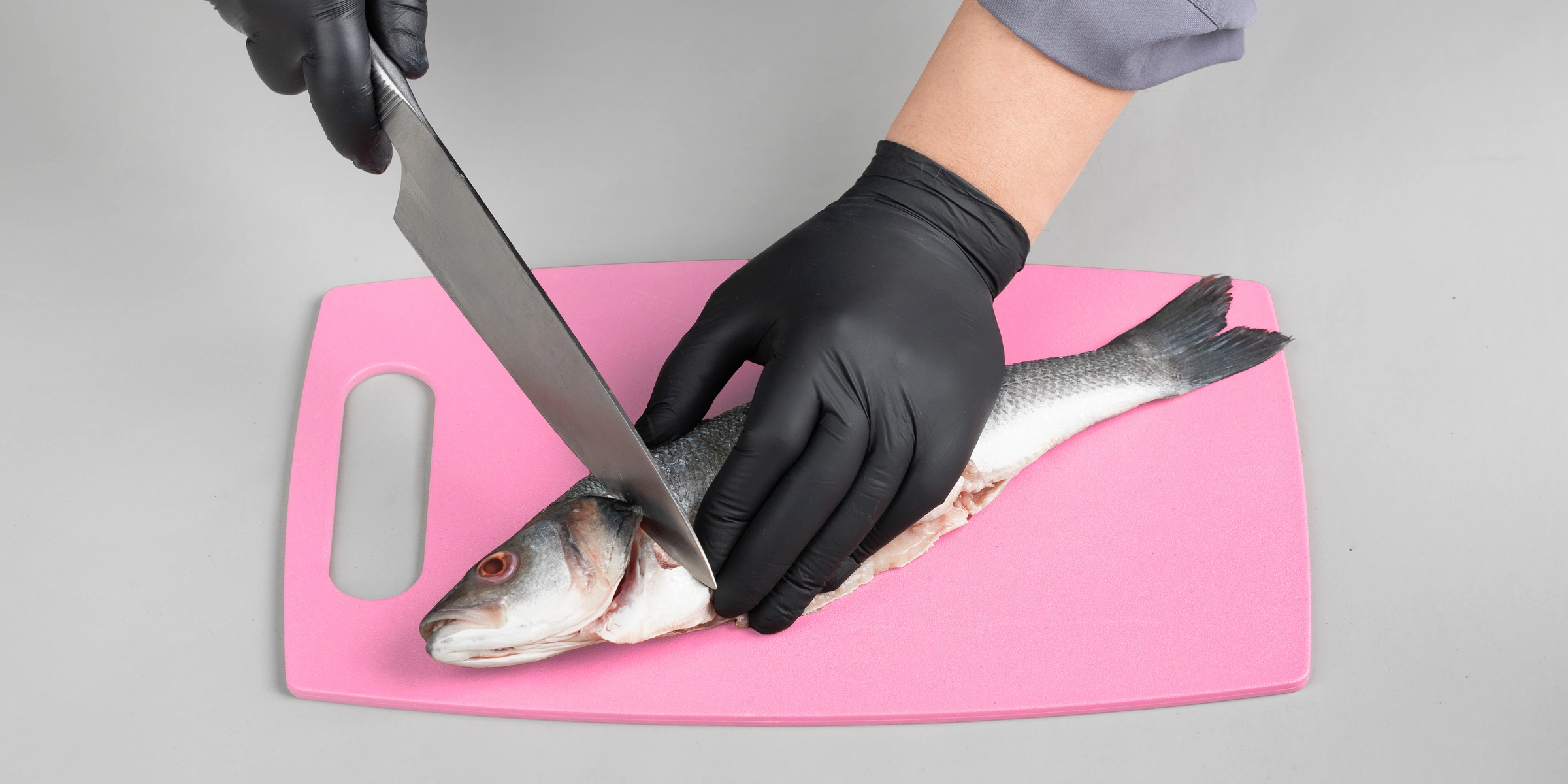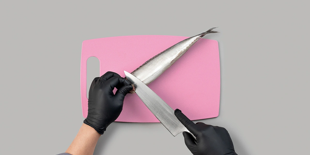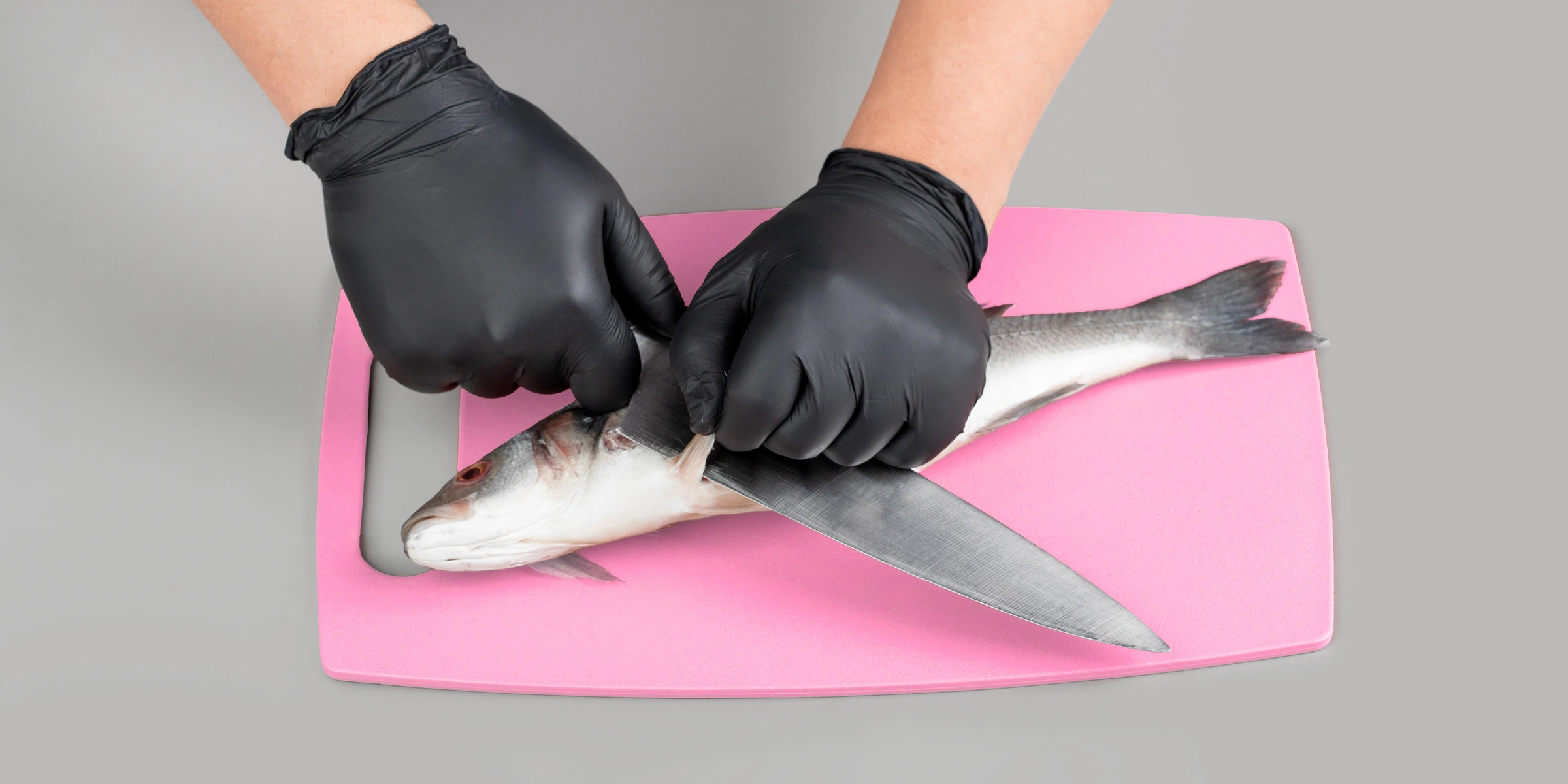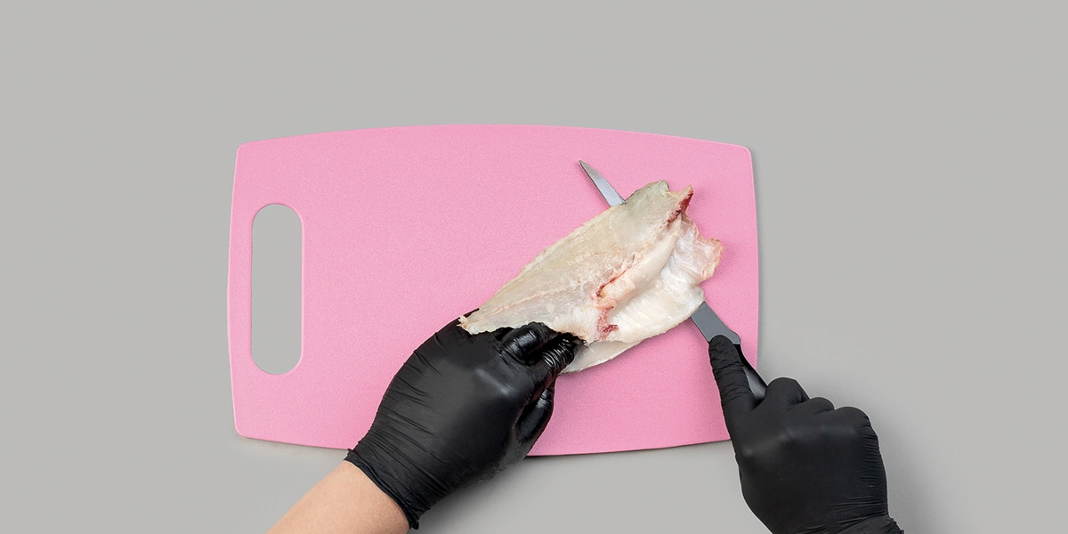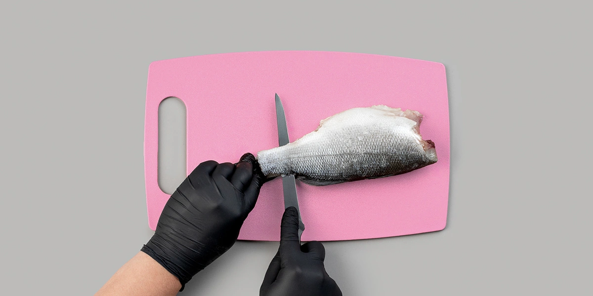 1. Разделочная доска. Чтобы рыба не скользила во время разделки, воспользуйтесь пластиковой или деревянной разделочной доской. В идеале такого размера, чтобы тушка поместилась на ней целиком, а по периметру осталось ещё место. Можно также подложить под скользкую рыбу газету или бумажные полотенца.