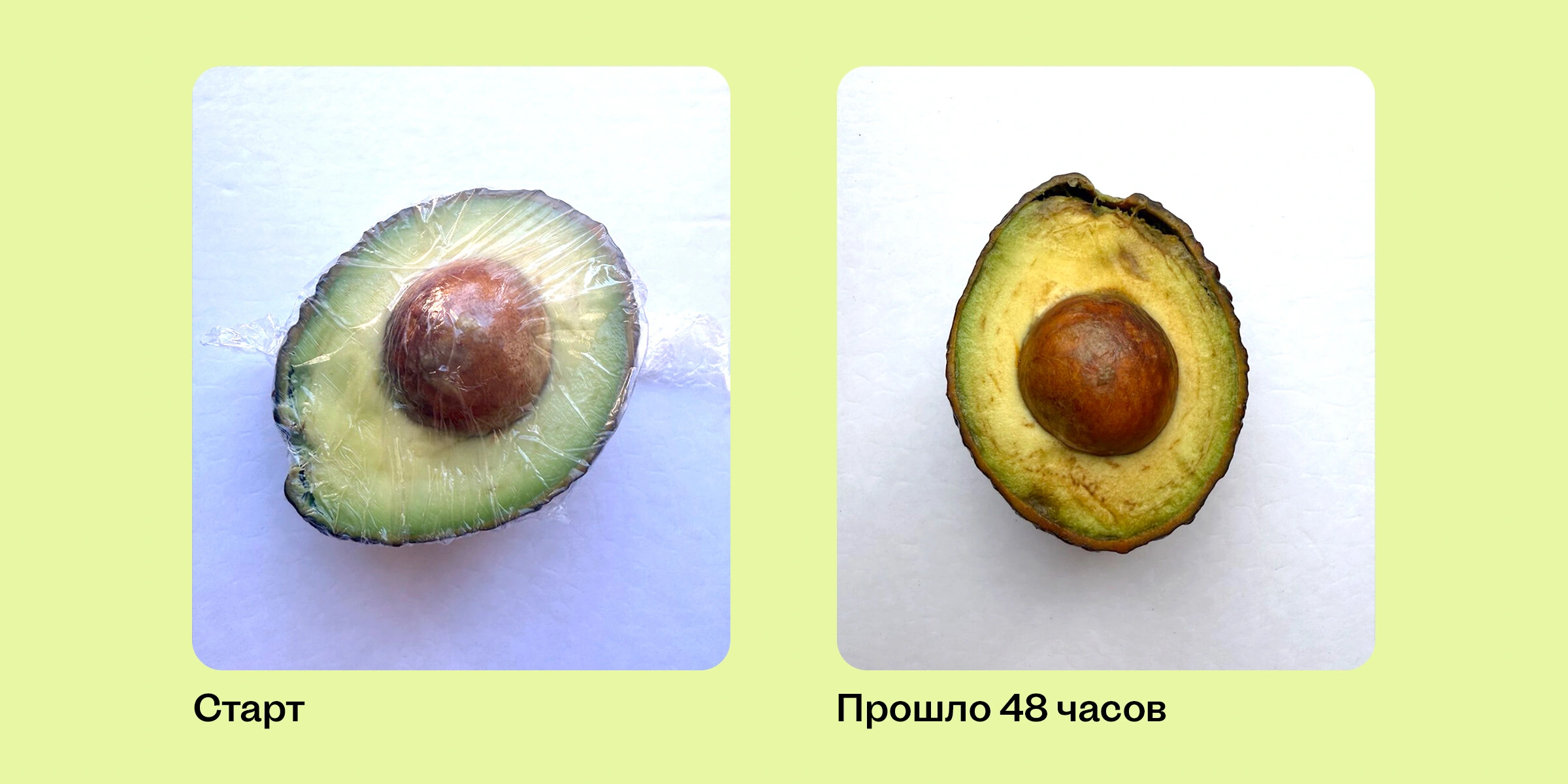Выбрали пять самых популярных способов и проверили их на спелых авокадо Хасс из ВкусВилла, отследив результат через 12, 24 и 48 часов.