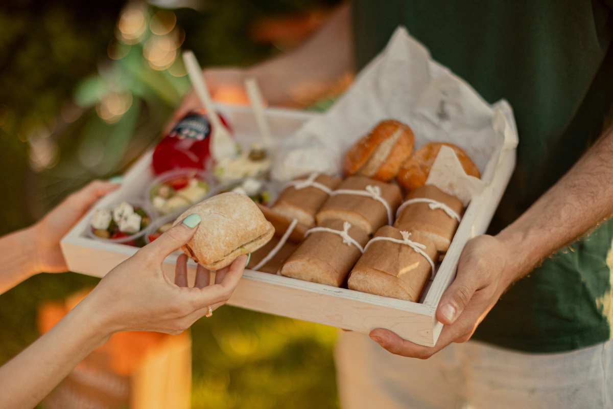- Если планируете пикник на прогулке, подготовьте бумажные пакеты с продуктами для каждого гостя. Вам не придётся доставать еду и делить её на месте. К слову, закуски от ВкусВилл Праздник упакованы порционно и всегда будут смотреться вкусно и эстетично.