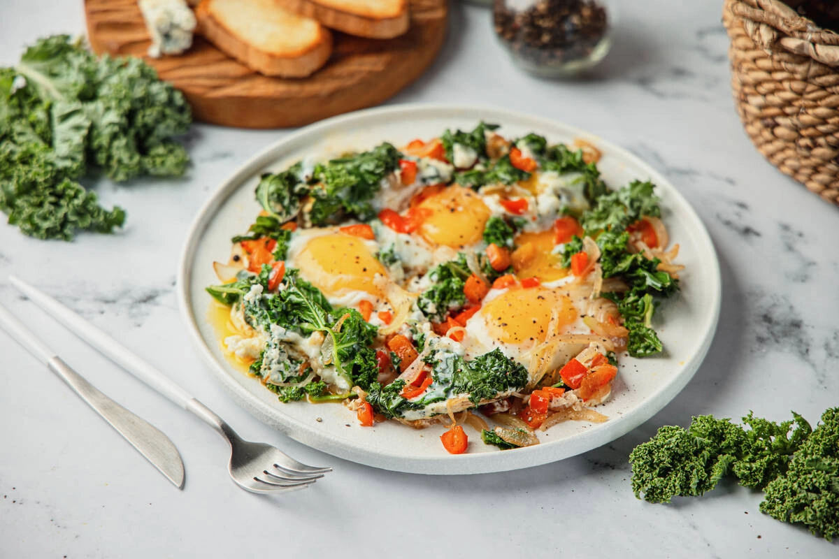 Яичница с кейлом и сладким перцем — быстрый, сытный и витаминный завтрак