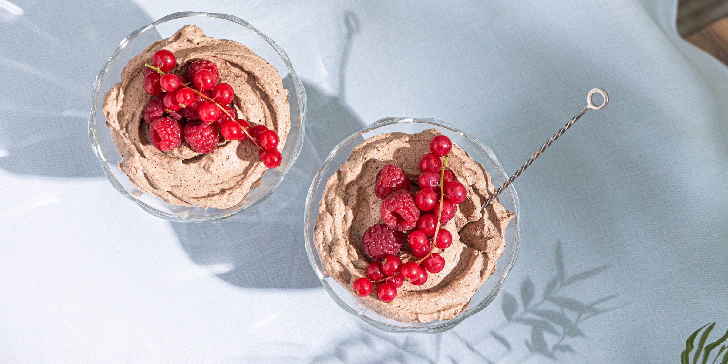 Этот нежнейший мусс — спасение от внезапной тяги к сладкому. Он готовится за считаные минуты, а по вкусу напоминает слегка подтаявший шоколадный пломбир. Дополните мусс горстью свежей малины, и роскошный десерт готов!