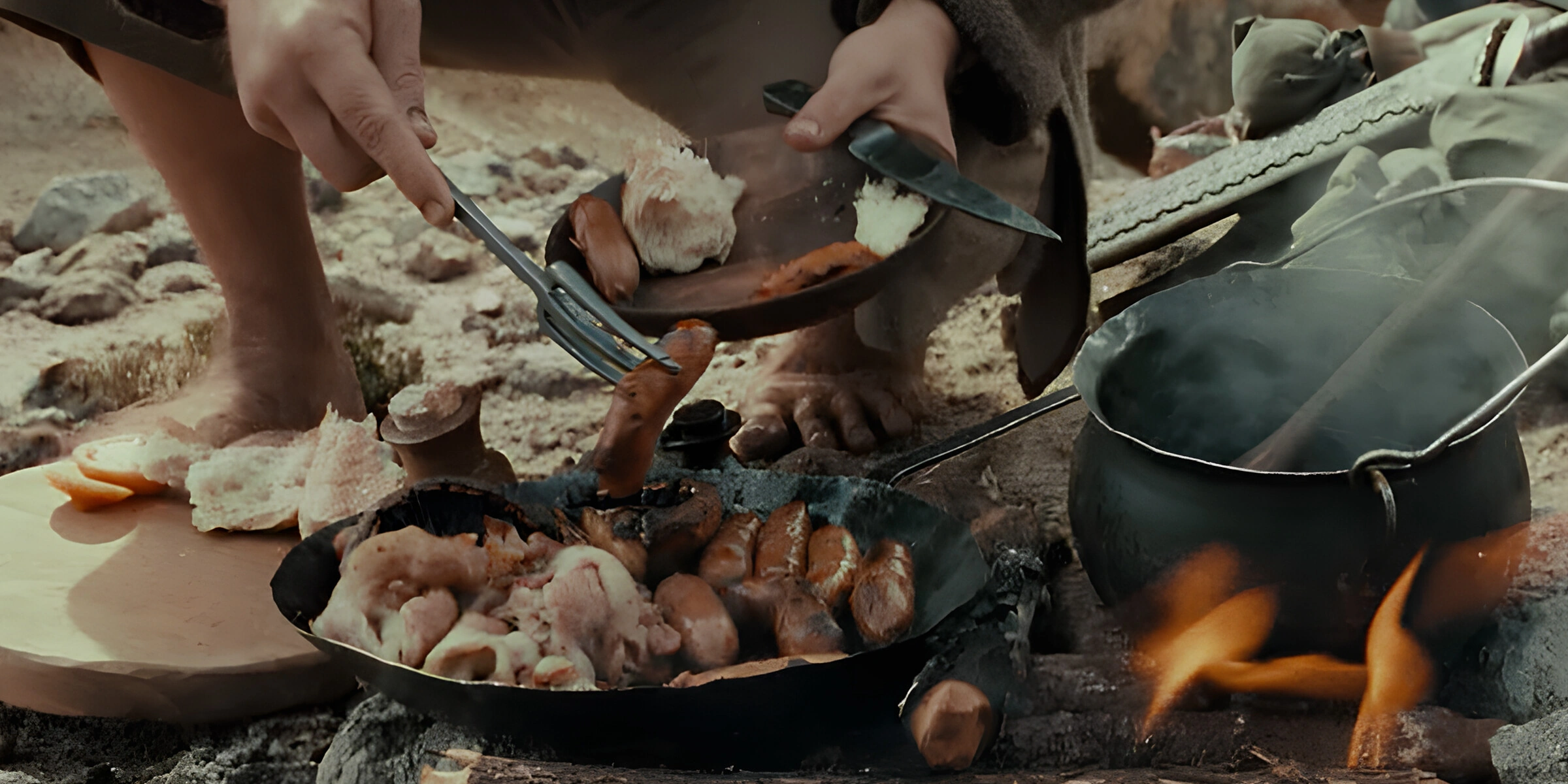 Если внимательно присмотреться ко всей трилогии Питера Джексона, то можно заметить, что и люди, и хоббиты готовили в пути похлёбки. Эовин из Рохана угощала таким мясным блюдом Арагорна, а Сэм варил похлёбку из кроликов, которых поймал Голлум.