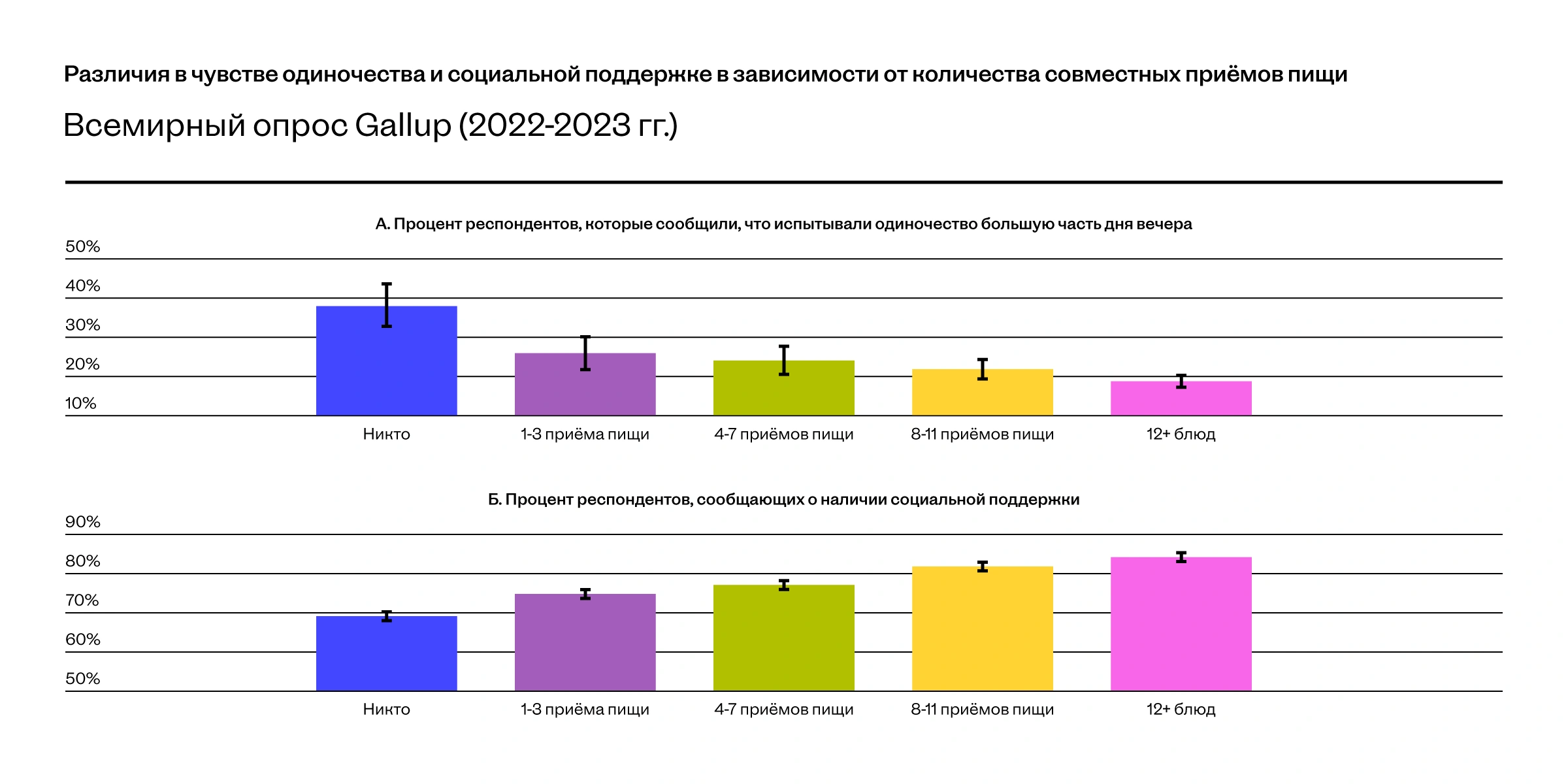 Лидерами по счастью от совместных приёмов пищи оказались жители стран Латинской Америки и Карибского бассейна — там едят вместе с семьёй или просто знакомыми людьми более девяти раз в неделю.