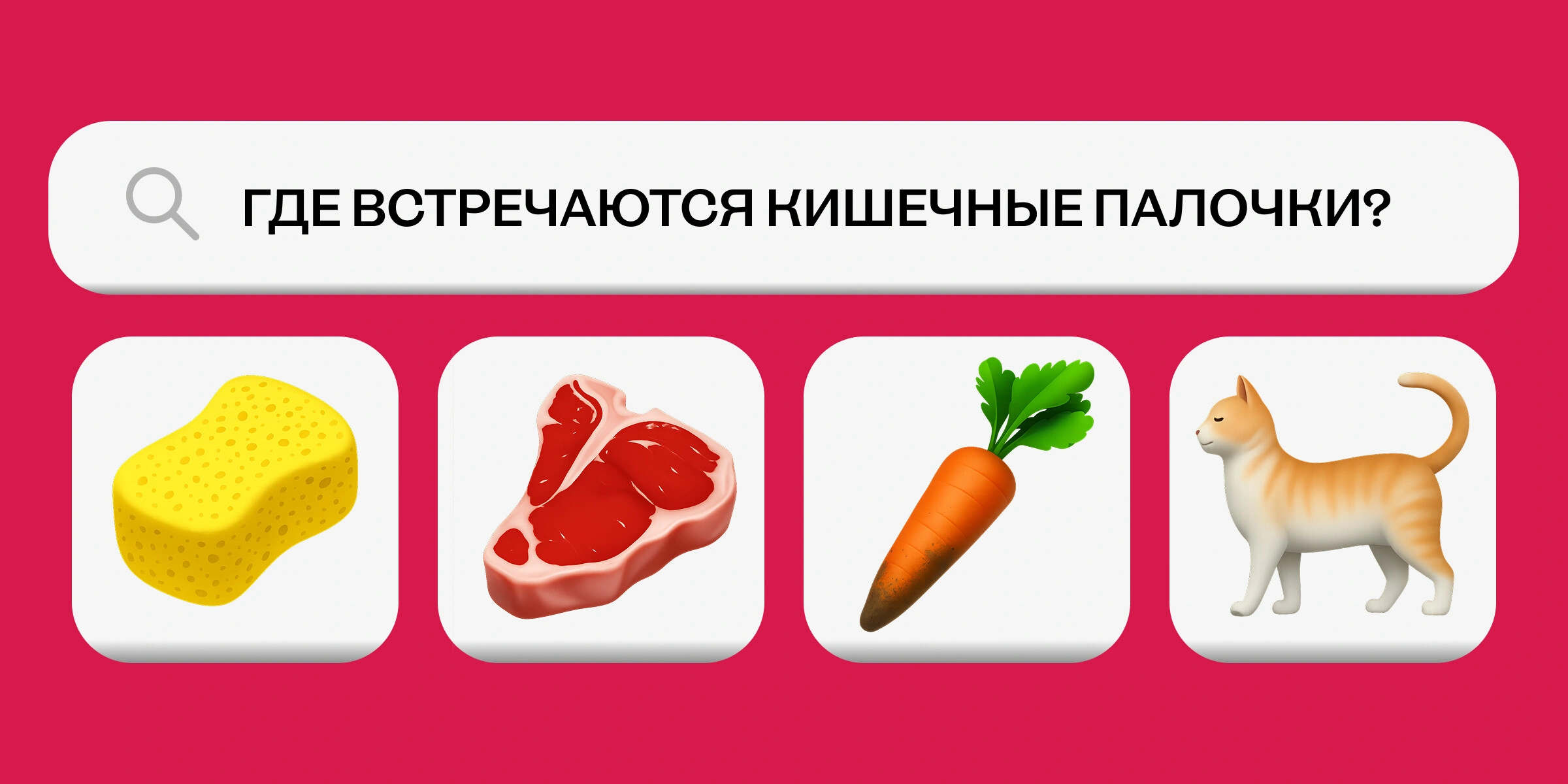 «Представьте, эти крошечные организмы живут не только в грязных лужах и на немытых морковках. Их можно найти практически везде: и на посудной губке, и в аппетитном мамином салате, и в собственном кишечнике (причём вы даже не испытываете при этом дискомфорта)!