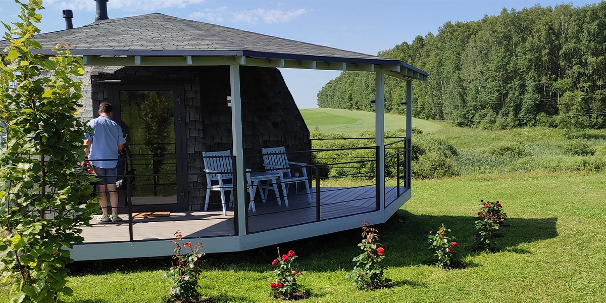 — Это не глэмпинг, это — агротуризм. То есть вы приезжаете пожить не в палатке с мебелью, а в гости к тем, кто работает на этой земле. Вы на время становитесь частью этого места, подчиняетесь его ритму. Может быть и такая ситуация, что «простите, сегодня все работают, что желаете на ужин, не спрашиваем, просим к общему столу» — как в семье. Да, получаете гостиничный комфорт. Развлечения, зрелищность? Жизнь вокруг — вот это зрелище. Можете присоединиться к нашим делам, можете изучать окрестности: грибы, ягоды, рыбалка, велосипедные и пешие прогулки… А можете вообще ничего не делать, а просто сидеть на веранде, слушать, дышать и видеть всё это.