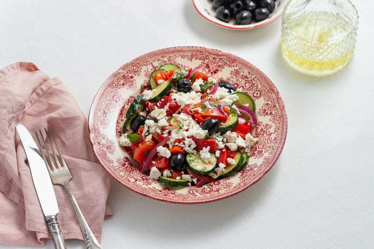 Традиционный болгарский салат из свежих овощей и брынзы, который можно найти в меню ресторанов по всему миру. Хорош как сам по себе с ломтём свежего хлеба, так и в качестве лёгкого гарнира к мясу.