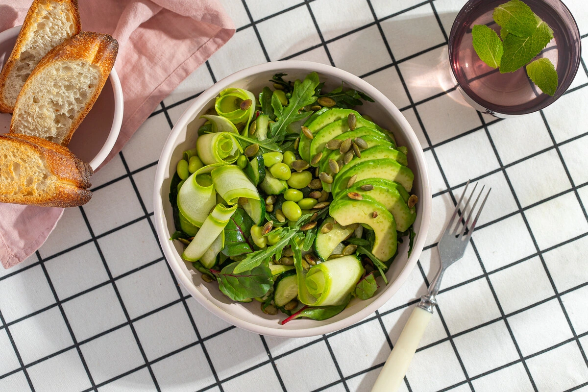 Рецепт зелёного салата с авокадо и эдамаме