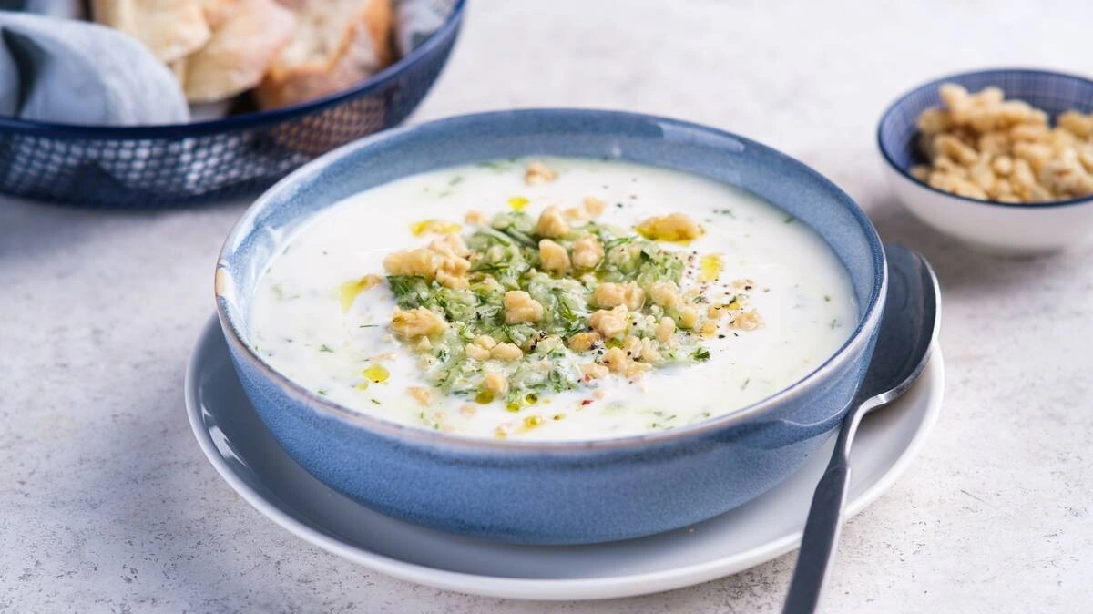 Холодный суп с добавлением грецких орехов и чеснока. Попробуйте в жаркий день – это идеальный вариант для обеда.