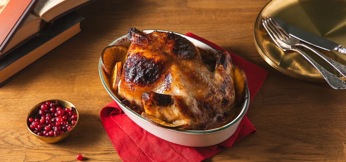Рождественская курица с клюквой и апельсинами