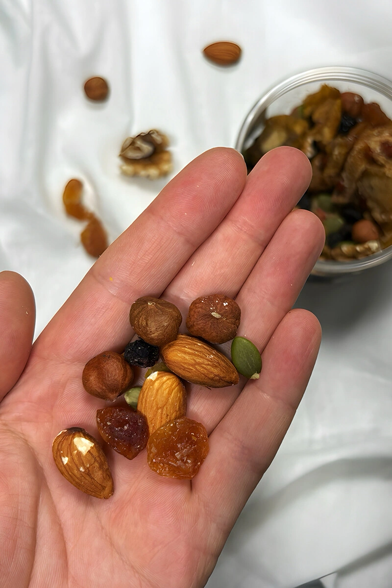 При выборе новинок сразу же увидела эту смесь, и она с первого взгляда покорила моё сердце. А потом ещё добавилось радости, когда я открыла для себя сушёную айву, раньше мне не доводилось её в таком виде пробовать. Приятная кислинка, можно есть, как те же яблочные чипсы.