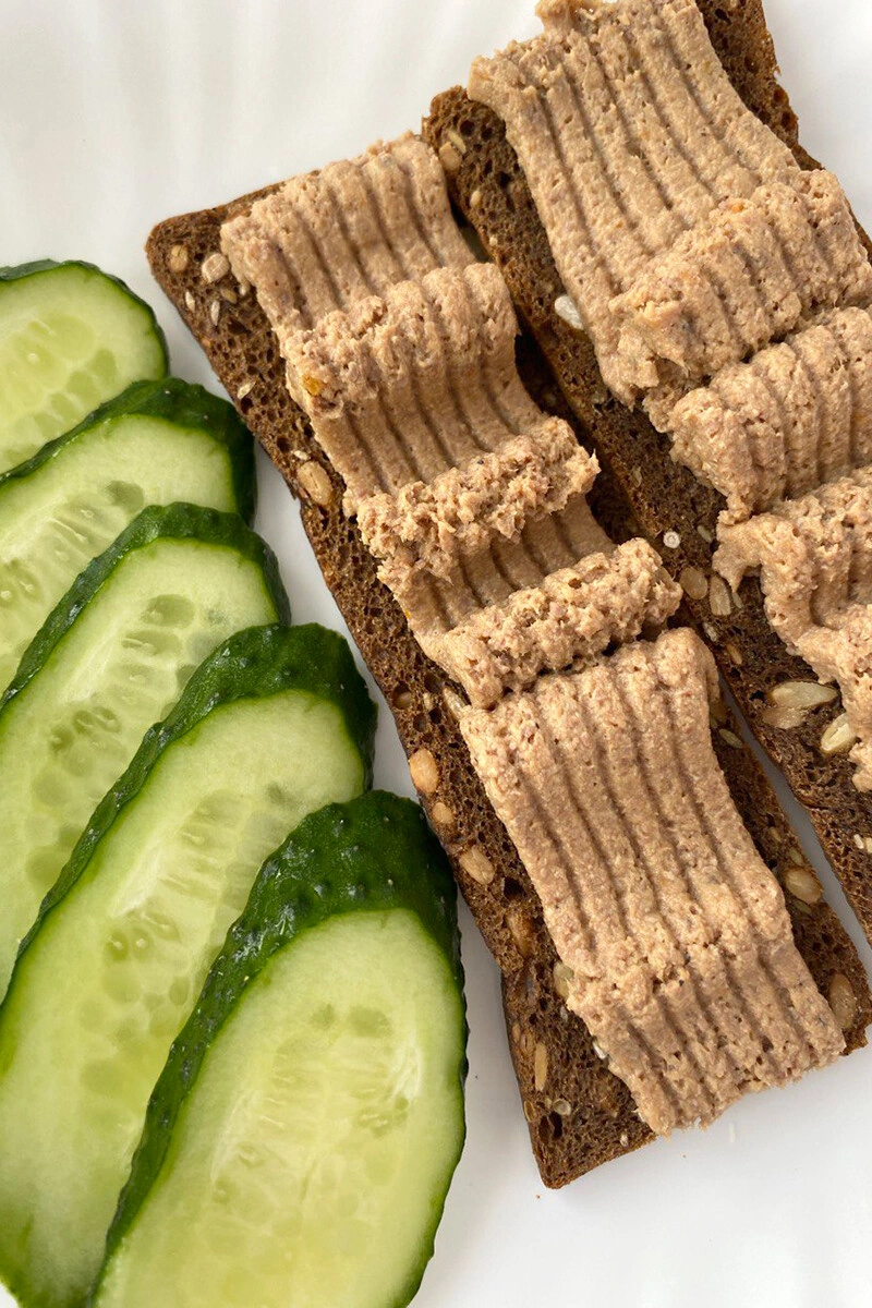 Я дополнила намазкой наши хлебцы и порезала огурчик. Стоит ли говорить, что мне было вкусно? Конечно, да. Из недостатков отметила только то, что заканчивается намазка очень быстро.