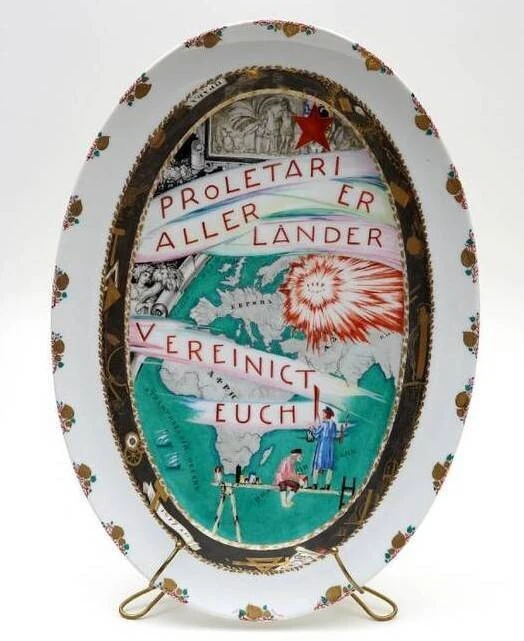 «PROLETARIERS ALLER LANDER VEREINICT EUCH!» («Пролетарии всех стран, соединяйтесь!»), М. М. Адамович, 1923 г. Уникальное блюдо встречает гостей на входе в один из залов музея © Государственный музей-заповедник «Царицыно» / © Tsaritsyno State Museum-Reserve