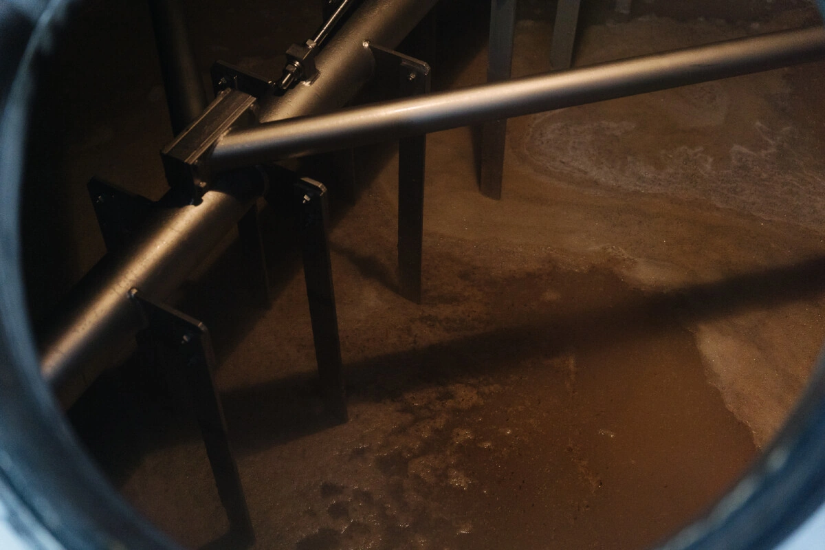 После этого затор поступает в фильтр-чан. В нём происходит процесс фильтрования массы. Чан устроен как ёмкость с двойным дном: верхняя часть с ситами позволяет отделить жидкое сусло от дробины (твёрдых остатков солода). Затем дробину промывают горячей водой, чтобы вытянуть оставшиеся сахара, — так получают готовое сусло.