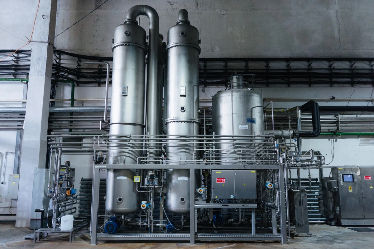 Огромная шумящая машина нагревает жидкость в условиях глубокого вакуума, он снижает температуру кипения спирта, и тот испаряется. После этого напиток снова охлаждают до 2–4 °C.
