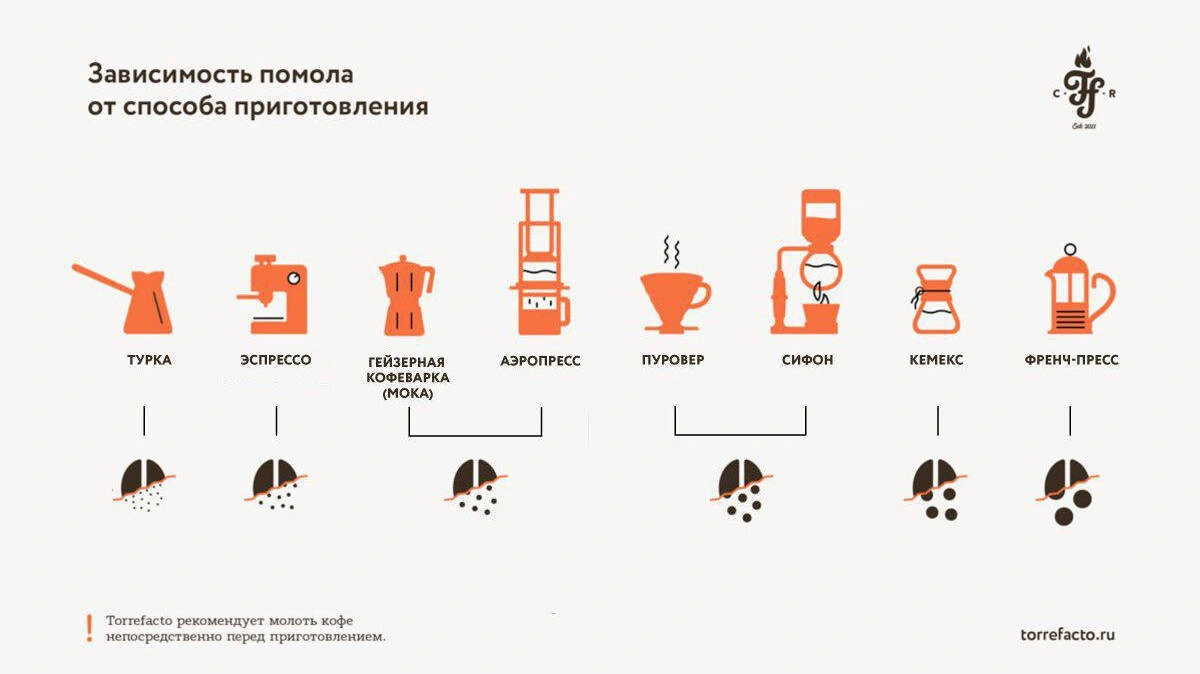 Молотый кофе стоит покупать в том случае, если вы планируете быстро его использовать. А ещё если вы знаете, какой помол нужен для разных способов заваривания. Покупая такой кофе, обратите внимание на упаковку: обычно там указаны степень обжарки и лучший способ приготовления.