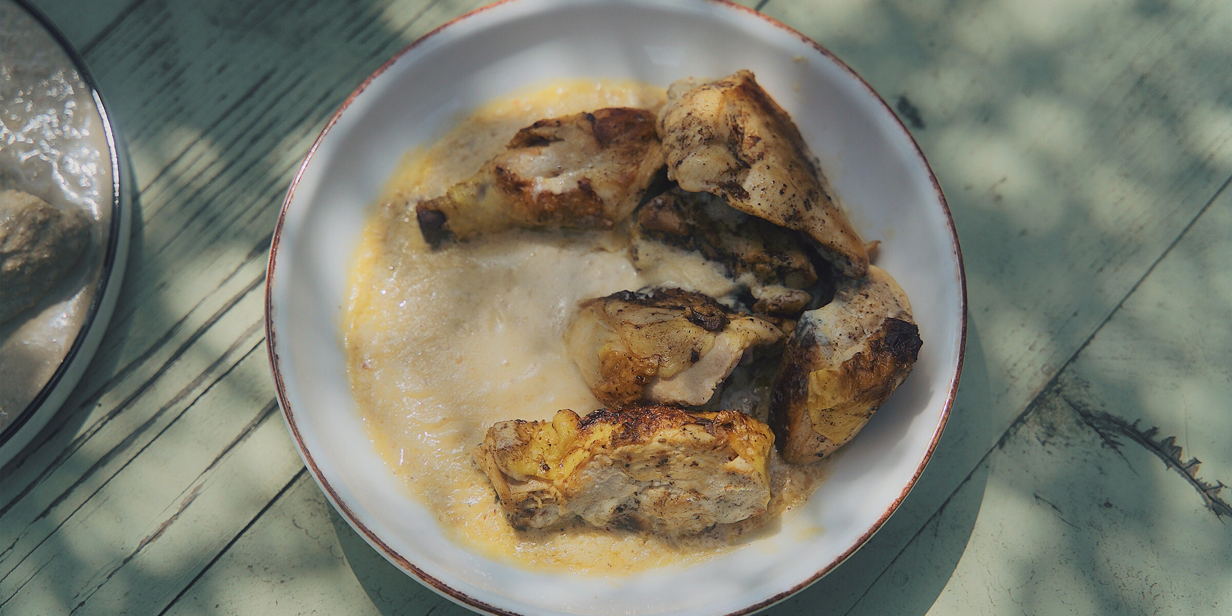 - два вида цыплёнка — в чесночно-сливочном соусе и в чесночном соусе-«супе»;