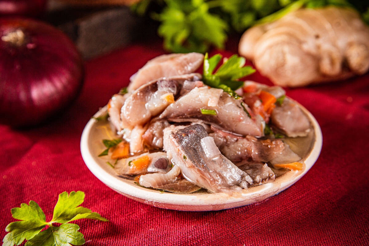 То есть в 1 кг рыбных пресервов, возьмём ту же сельдь кусочками, будет порядка 1,5 г сорбиновой кислоты, а в порции 200 г — всего 0,3 г. Чтобы превысить допустимую суточную дозу в 1,5 г сорбиновой кислоты в день, человеку нужно съесть 5 порций селёдки.