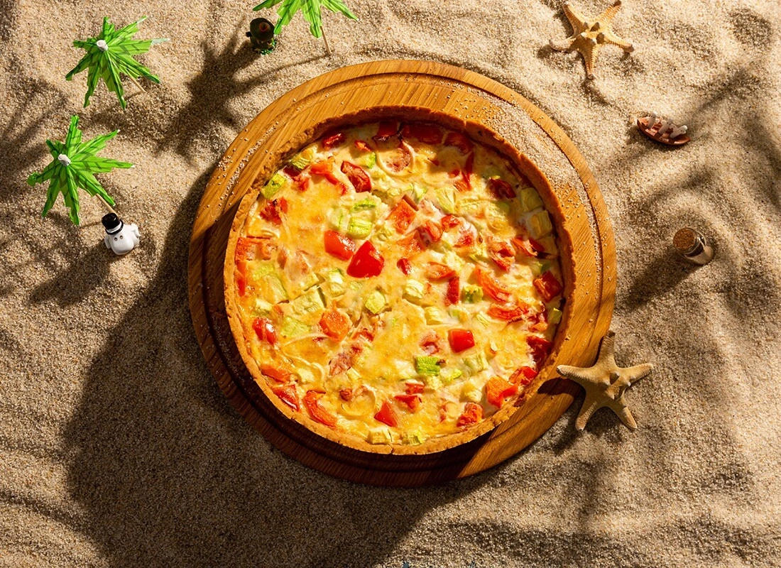 - Выложите начинку на основу и запекайте около 40 минут при 200 °C до готовности.