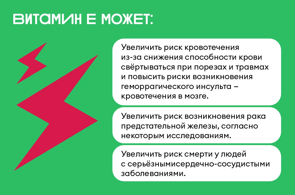 Также необходимо проконсультироваться с врачом, прежде чем начинать пероральный приём витамина Е, если у вас есть/был: