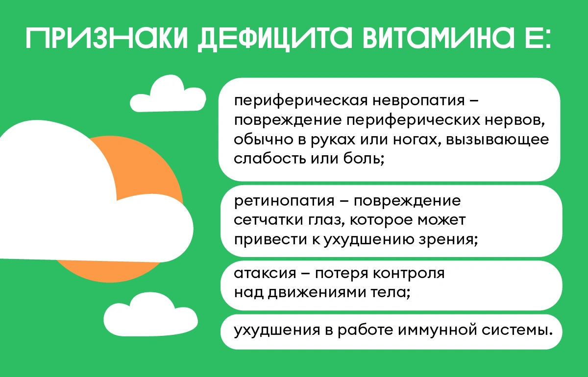 Дефицит витамина Е — явление не такое уж и частое, однако у людей с расстройствами пищеварения или недостаточной усваиваемостью жира — например, при панкреатите, целиакии или муковисцидозе — он может развиться.