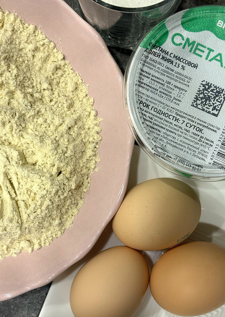 Нужно всего лишь взбить яйца с сахаром, добавить в получившуюся массу сметану и немного растительного масла, а затем вмешать готовую смесь. Пять минут — и золотистое ароматное тесто с вкраплениями семян тыквы готово.