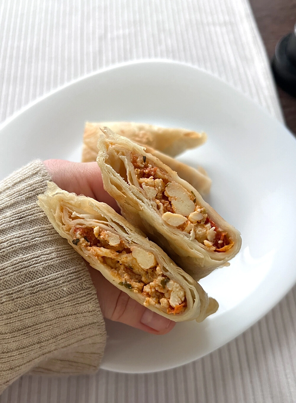 К сожалению, этой осенью меня настигла простуда, и я сразу приметила новинку во ВкусВилле — сытный перекус, который спасает, когда совсем не хочется стоять у плиты. А ещё я обожаю шакшуку как полноценное блюдо и, конечно, не могла устоять перед этими конвертиками.