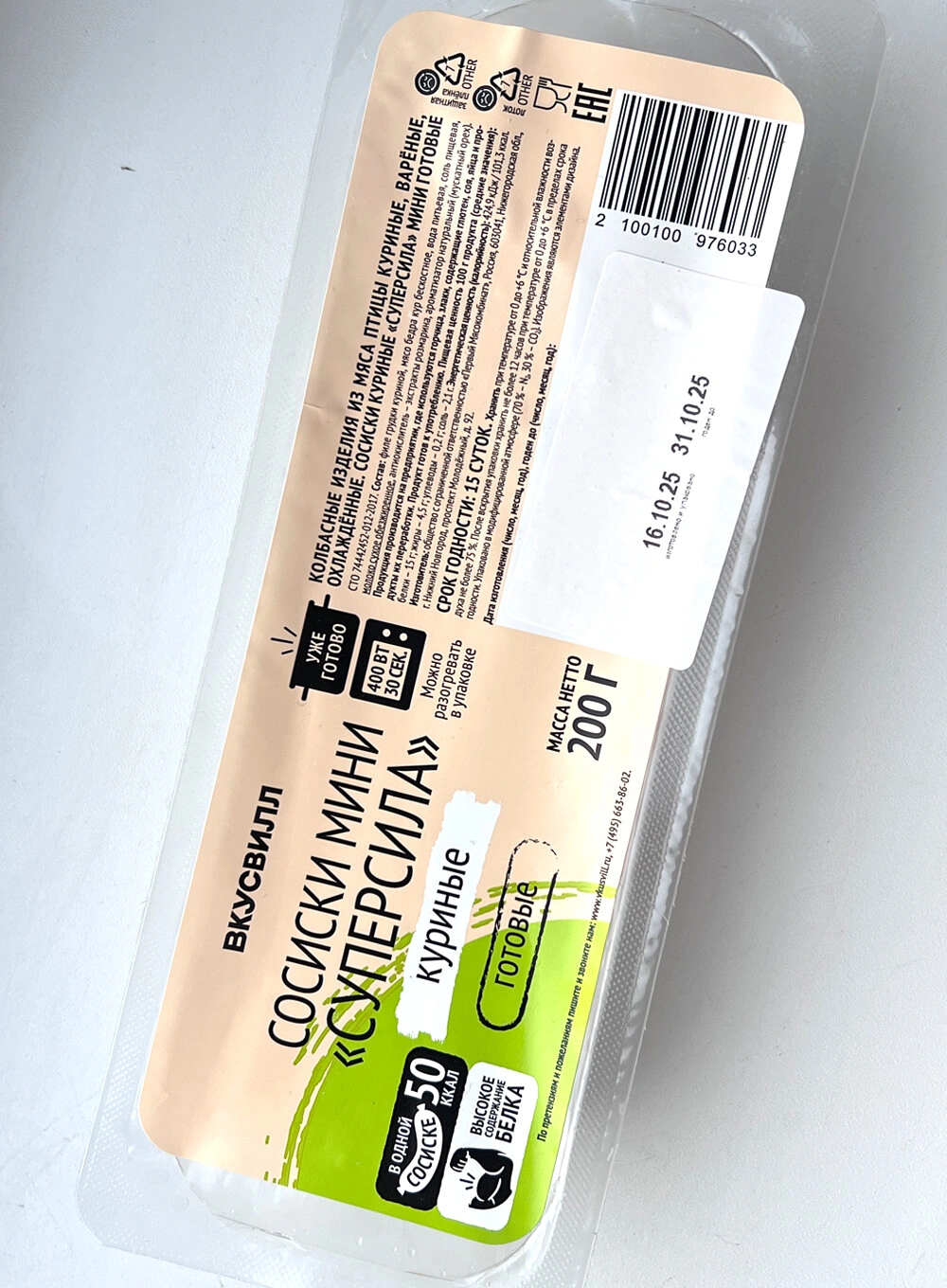 Когда болеешь, главное — не терять силы. А такие мини-сосиски как раз помогают в этом: хорошее содержание белка, удобство и минимум усилий. Они порадовали отличным составом, а также тем, что уже готовы и их нужно только разогреть.