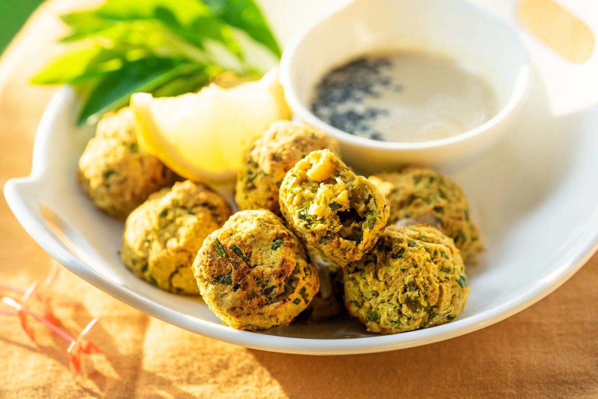 - Подавайте фалафель с тахини или греческим йогуртом.