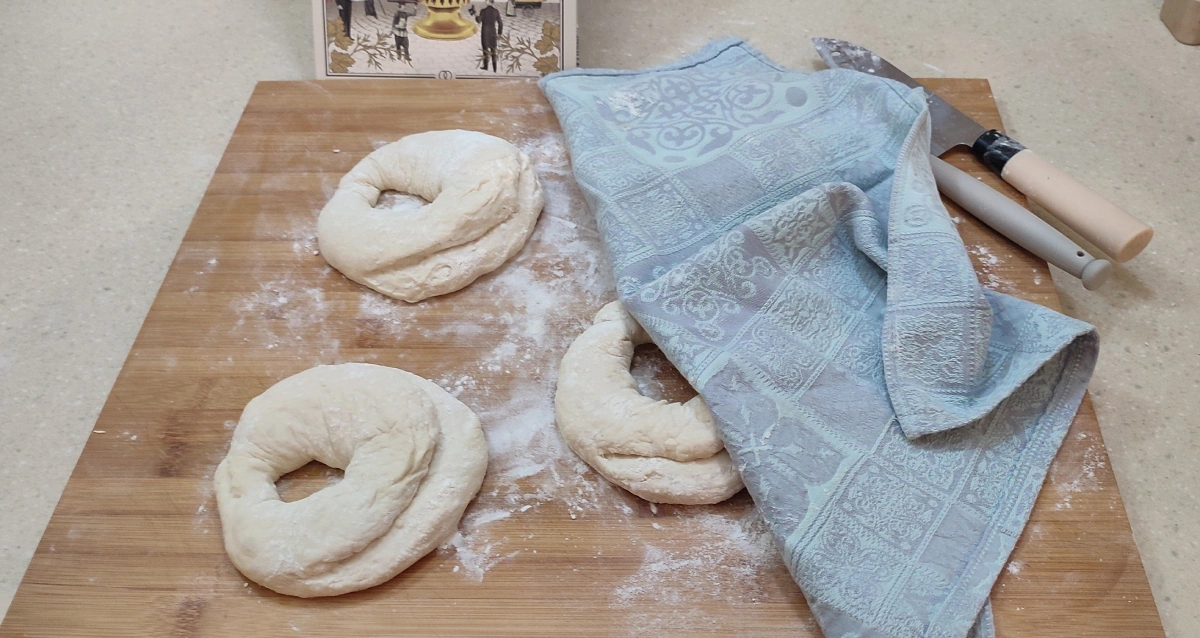 На калачи из книги в общей сложности ушло часов 7, из которых всего минут 30 заняло непосредственное участие в процессе: замесить тесто и проводить несложные манипуляции время от времени. Ну, и конечно, приглядывать за духовкой в конце, чтобы не спалить эту хлебную роскошь. Скажу одно: это стоит потраченного времени. Разве не чудо, когда всего из простой муки, воды, соли и дрожжей получается вкуснейшая штука — домашний хлеб.