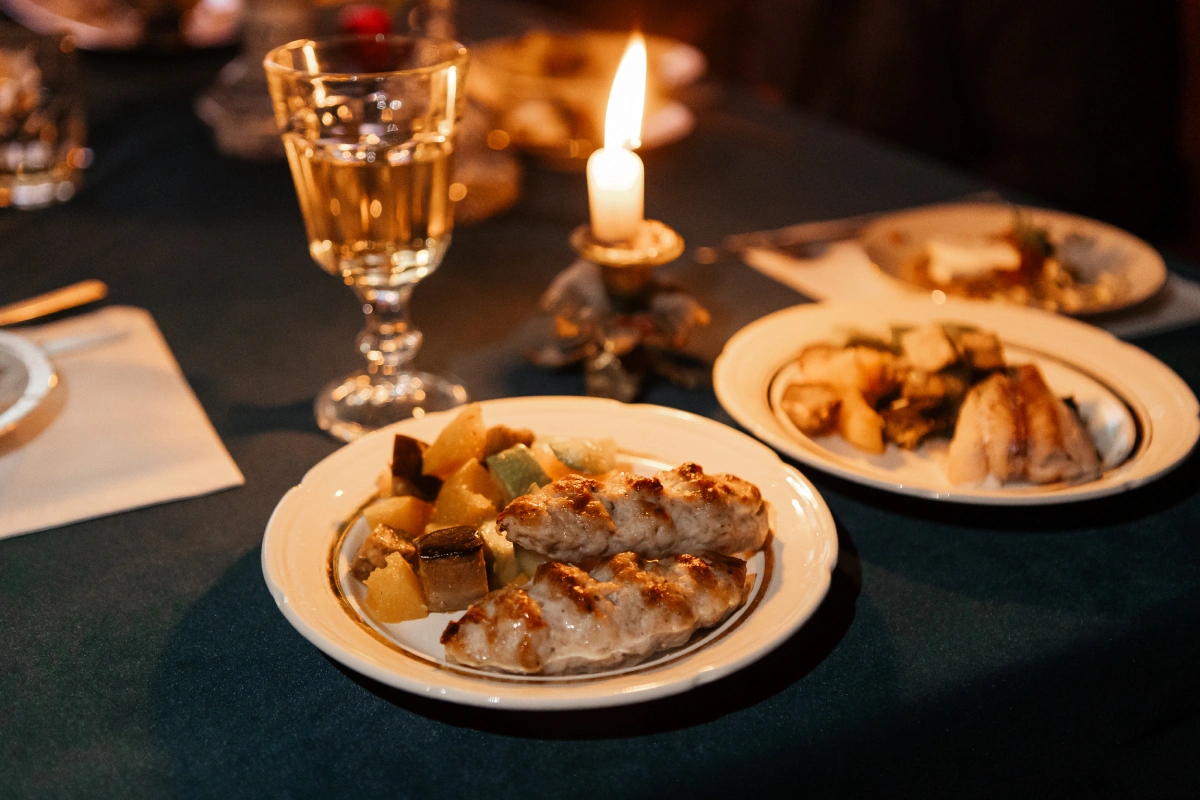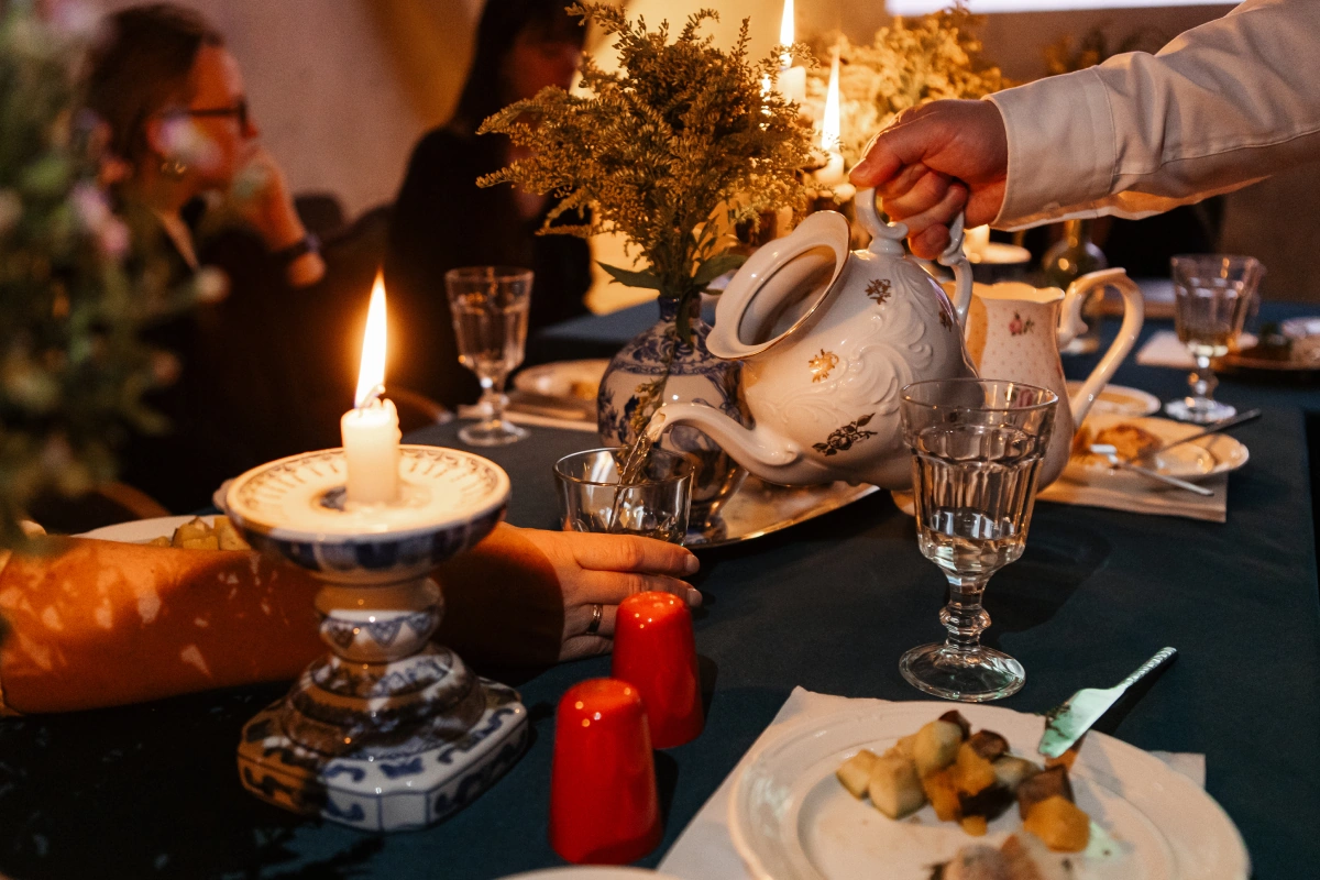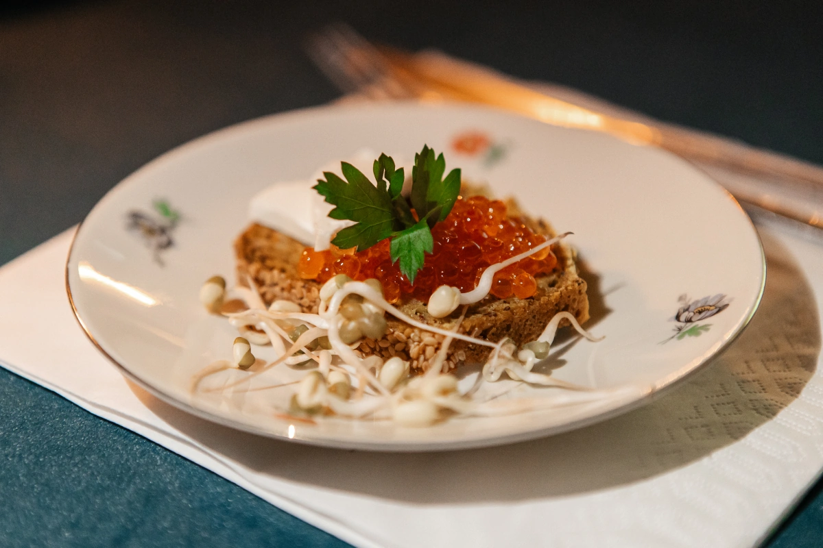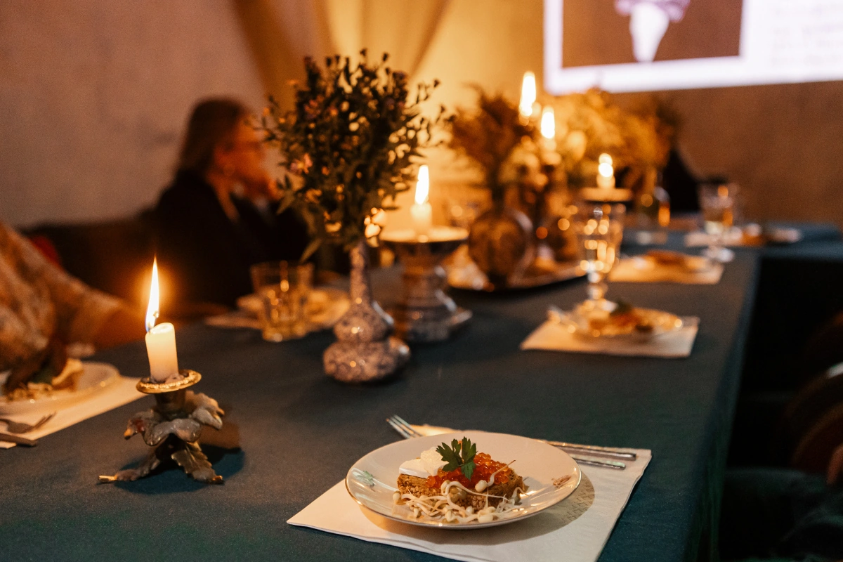 Подкрепить общую атмосферу на таких вечерах помогает меню, приготовленное Олэной Панчук, подругой и партнёром Марии по проекту. Олэна — нутрициолог, автор мастер-классов по полноценному питанию для детей и взрослых, поэтому гостей ждали не точные реконструкции, а блюда, создающие дух эпохи, но при этом адаптированные под современные запросы — без глютена, лактозы и без добавленного сахара.