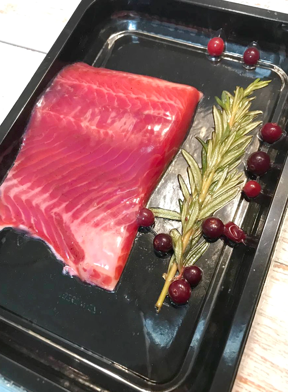 Форель слабосолёная филе-кусок «Гравлакс» с розмарином и клюквой, 200 г