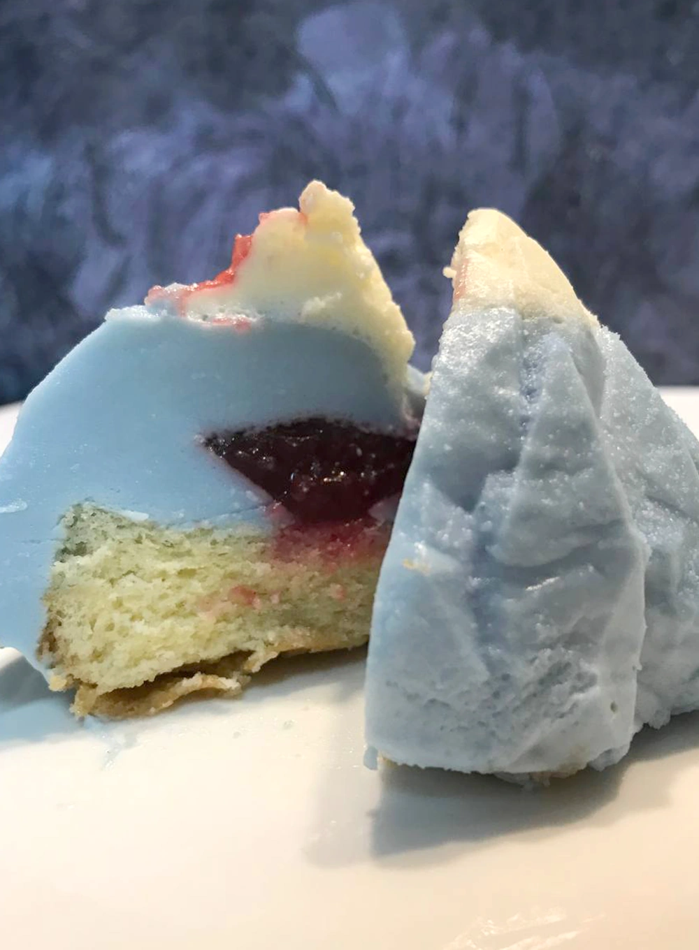 Увидев пирожное, я сразу поняла, какой мультфильм будет сопровождать моё «покорение» этой горы. Десерт напомнил трон Снежной королевы в её ледяном замке.
