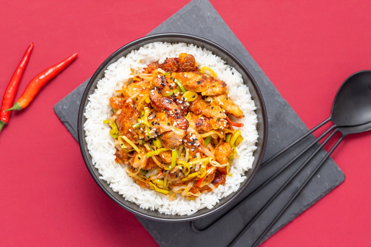 - Выложите курицу обратно в сковороду, добавьте оставшийся соевый соус и «Острый чили» и через пару минут снимите с огня. Подавайте с белым рисом.