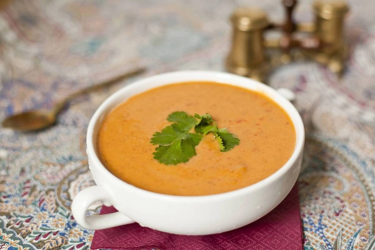 - Пюрируйте суп при помощи блендера, посолите, поперчите, добавьте щепотку паприки для цвета. Подавайте, украсив веточкой петрушки.