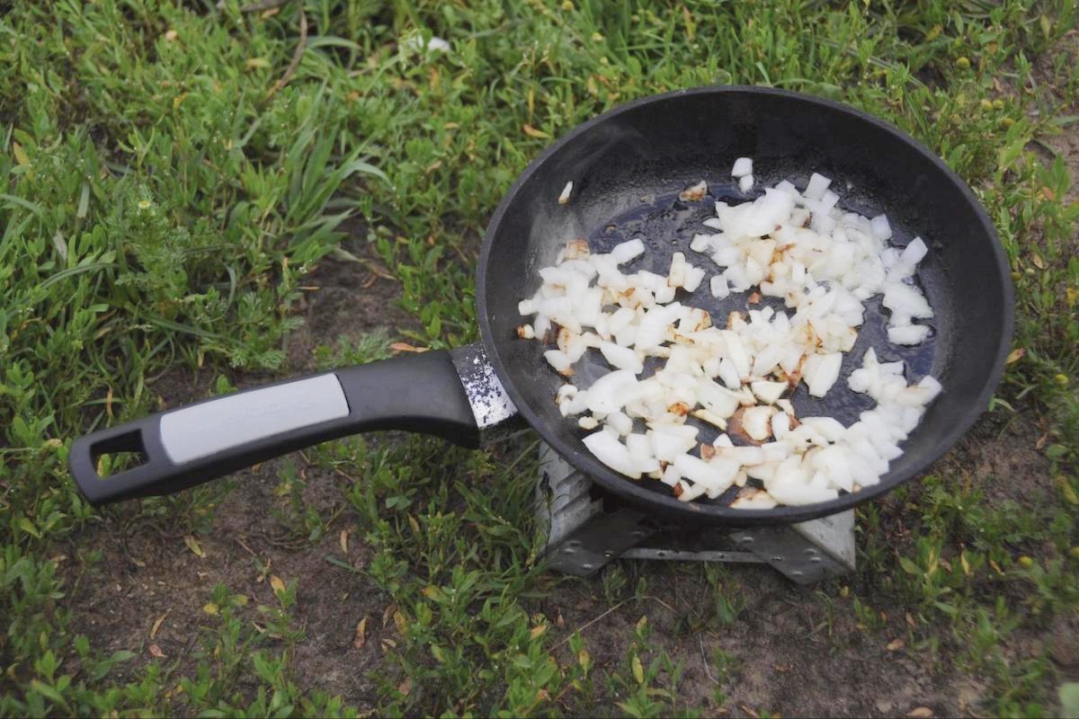 Совет от Полины Трояновской: «Если вы едете на машине, хорошая идея — взять помимо котелка ещё и сковородку. Тогда зажарка получится вкуснее, и вы сможете запараллелить приготовление зажарки и варку картофеля. Но точно так же можно приготовить похлёбку в одном котелке, постепенно добавляя ингредиенты. Правило простое: сначала жарим, в конце добавляем картофель и воду».