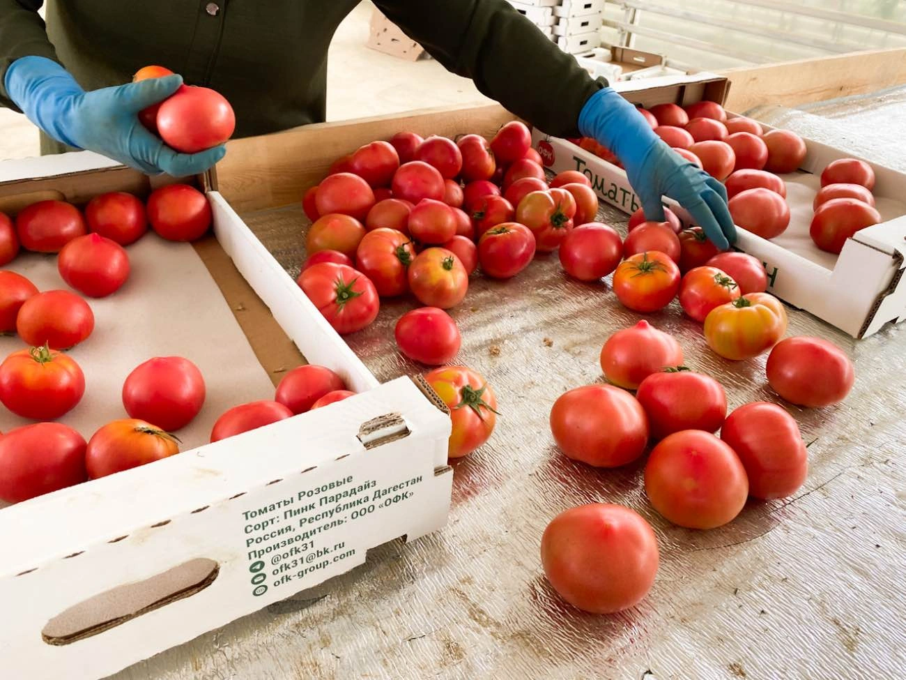 Розовые томаты сорта «Пинк Парадайз» из Дагестана во ВкусВилл поставляет несколько поставщиков. Одним из них является компания «ОФК», в чей тепличный комплекс в Дагестане мы отправились на сбор урожая помидоров.