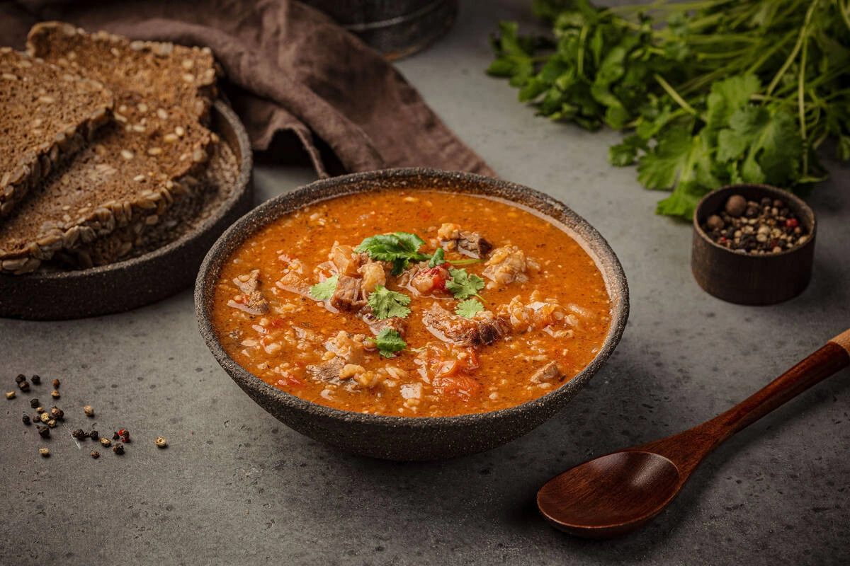 Хашлама — густой ароматный суп, который очень любят на Кавказе. Секрет блюда прост: мясо и овощи не спеша томятся в собственном соку, чтобы передать бульону весь свой вкус. Благодаря этому хашлама получается невероятно наваристой, сытной и по-настоящему домашней. Идеальное блюдо, чтобы утолить голод и согреться.