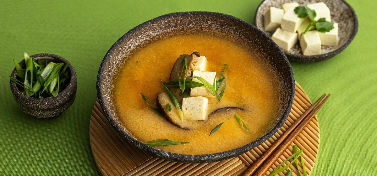 Секретный ингредиент этого супа — паста мисо, которую готовят из соевых бобов и особых грибов кодзи. Благодаря бережной ферментации, она становится настоящим источником пробиотиков, которые помогают укрепить иммунитет и улучшить пищеварение. А сам суп готовится невероятно просто и отлично сочетается с разными добавками: тофу, водорослями, грибами шиитаке или рыбой. Отличный выбор для лёгкого и согревающего обеда или ужина.
