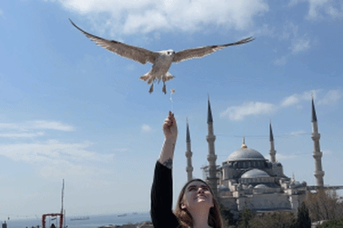 Есть ещё один обязательный туристический пункт — покормить чаек на одной из террас в районе Султанахмет с видом на Голубую мечеть.