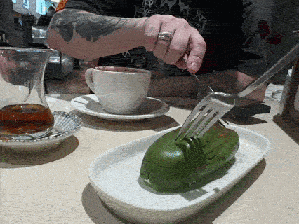 В соцсетях видела отзывы, что чизкейки там сухие и скорее похожи на ватрушки. Но мне повезло: внутри десерта был тот самый мягкий, чуть текучий центр, за который все и любят баскский чизкейк. Честно? Второй раз я бы на это 600 лир не тратила.