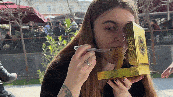 Почти под финал — боза или буза. Густой ферментированный напиток из злаков, который больше напоминает жидкую кашу с яблочным привкусом. Его подают с корицей и обычно едят ложкой. Необычно! Вкусно!