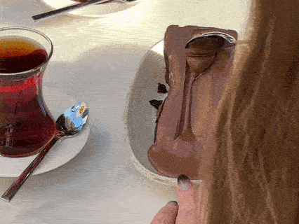 Следующая остановка — баскский чизкейк у Галатской башни. Не знаю, кто первым придумал эту традицию, но среди блогеров считается почти обязательным ритуалом: взять чизкейк, эффектно полить его шоколадом и сделать фотографию на фоне башни.