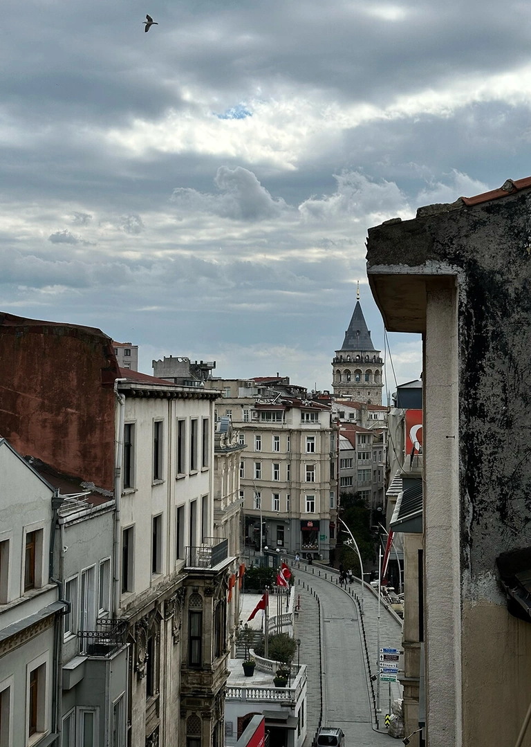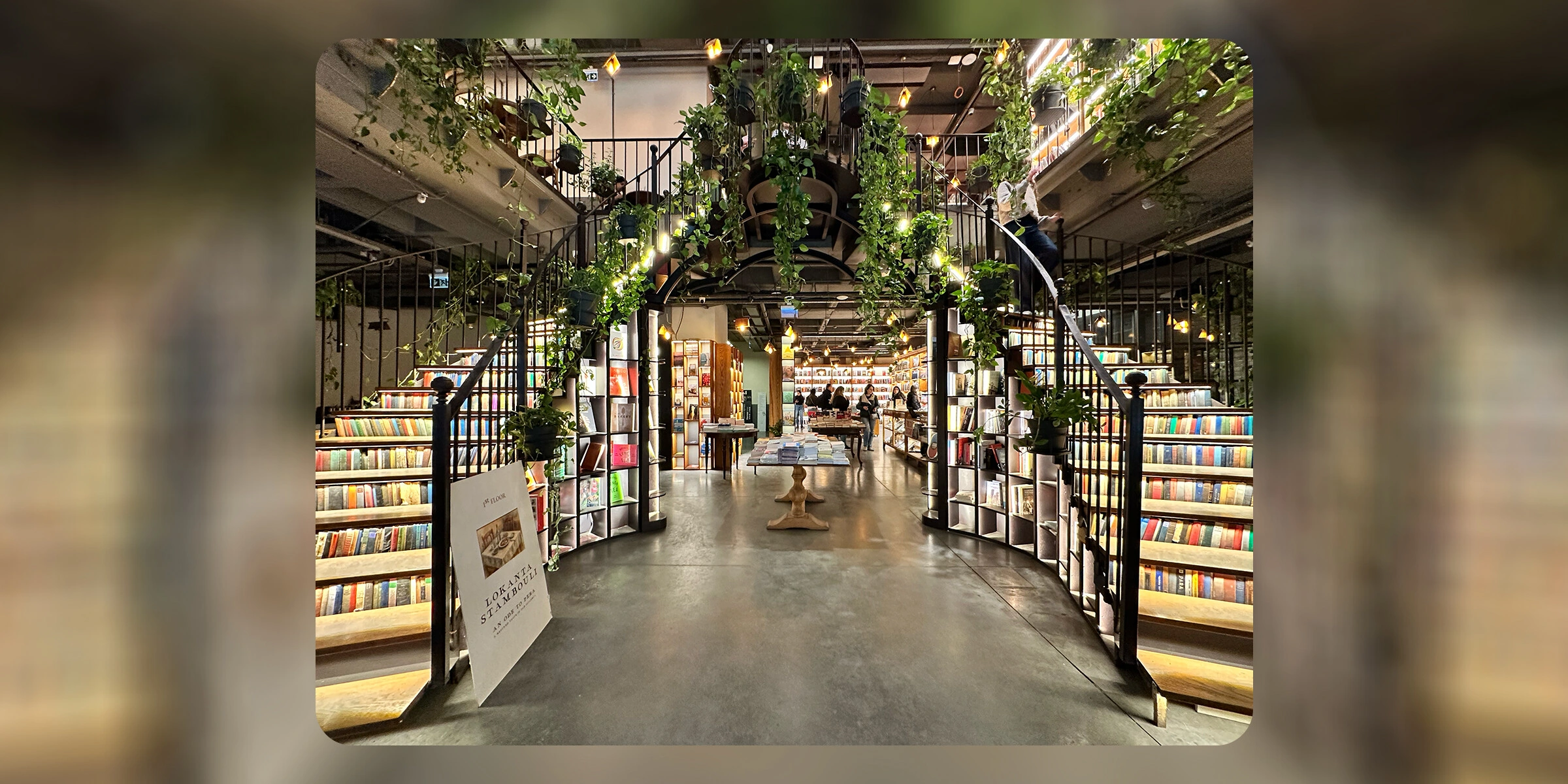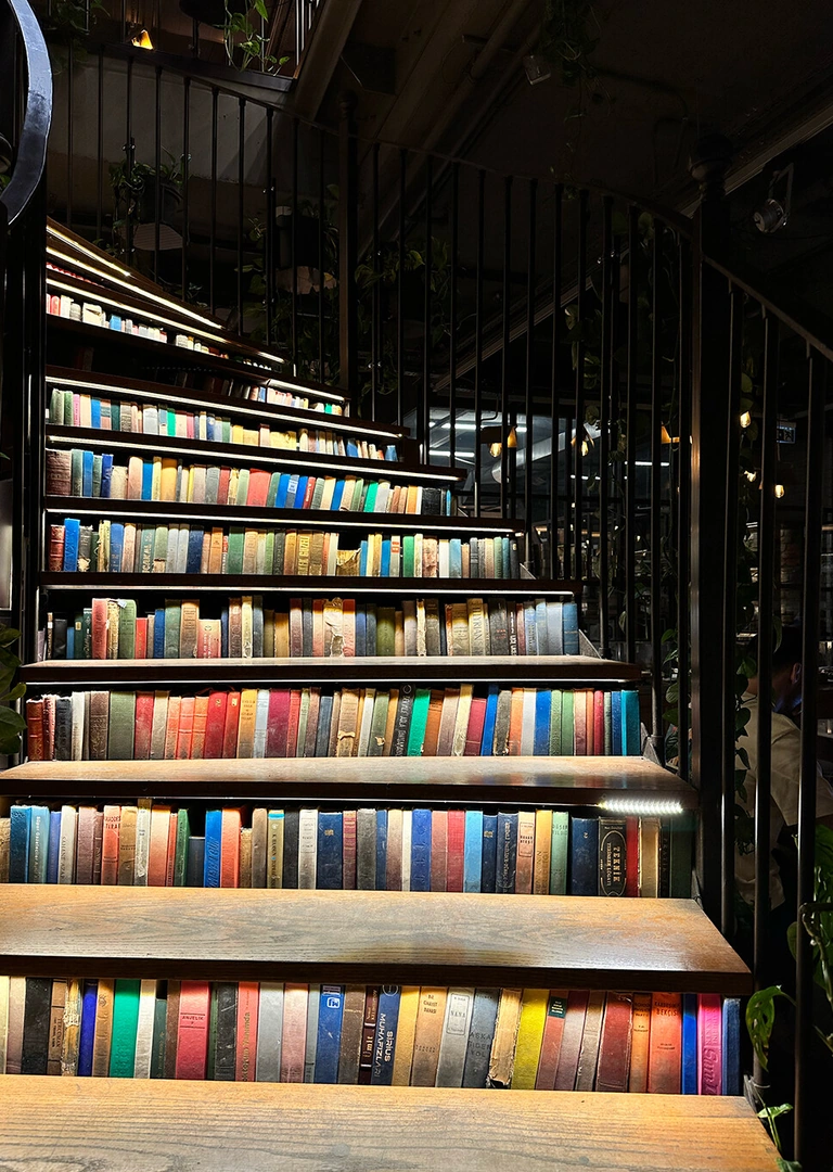 Следующей точкой в моём списке стала знаменитая в соцсетях Minoa Pera — то самое место с книжной лестницей, которая, кажется, есть буквально в каждом втором ролике про Стамбул. И да, такую локацию я не могла пропустить.