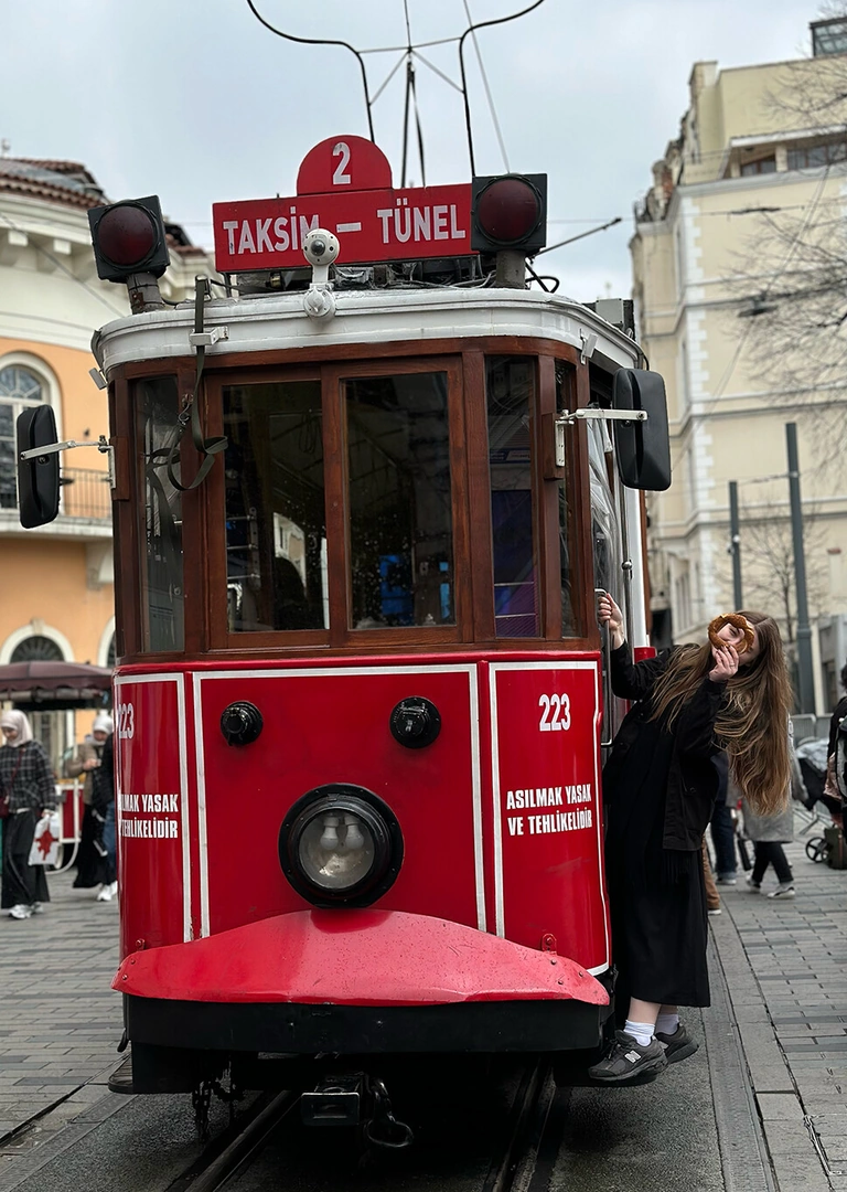 С ним можно фотографироваться, делать смешные усы, использовать его как рамку для кадра со знаменитым красным трамвайчиком на улице Истикляль — словом, это полноценный герой вашего контента.