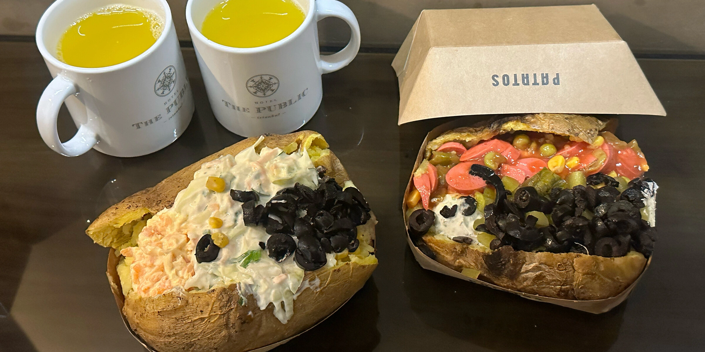 И наконец — кумпир. Огромная… Нет, исполинская запечённая картошка, которую невозможно испортить по определению. Многие блогеры советуют Patatos, поэтому мы пошли туда.