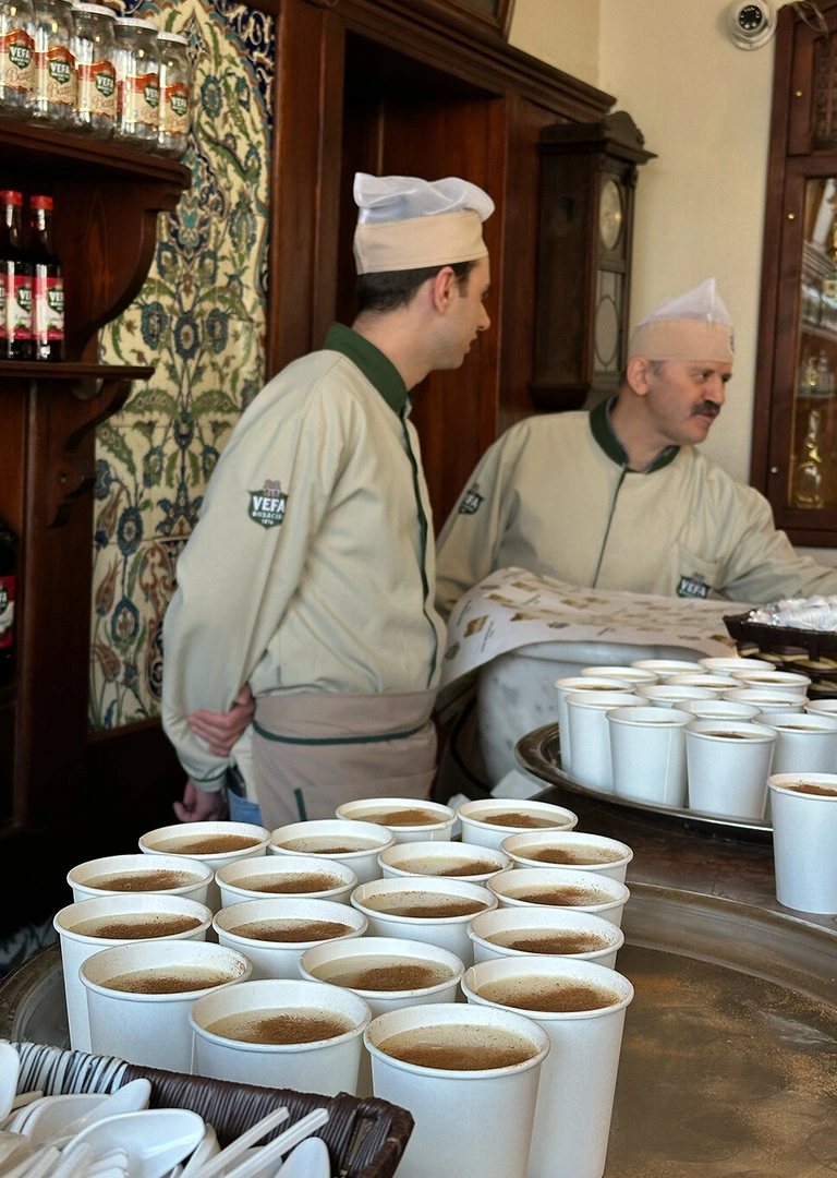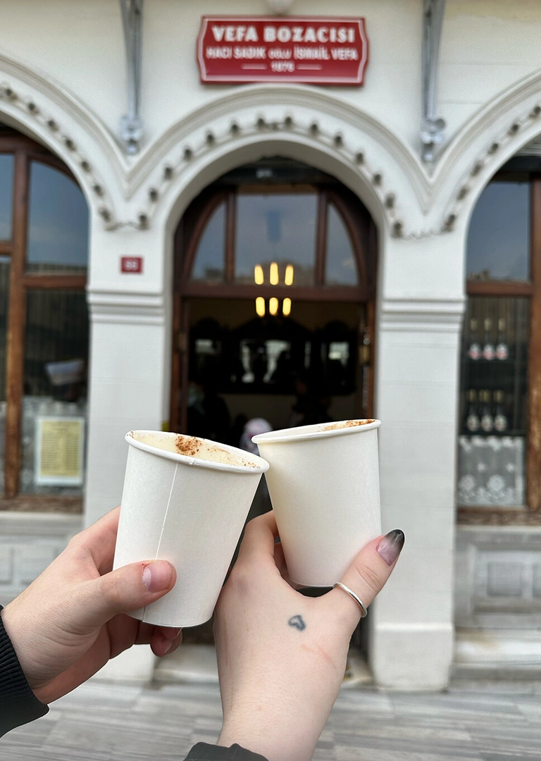 Пили мы его в легендарном месте Vefa. Здесь бозу готовят аж с XIX века. И да, там хранится стакан, из которого пил сам Мустафа Кемаль Ататюрк. Место абсолютно культовое и точно 10 из 10.
