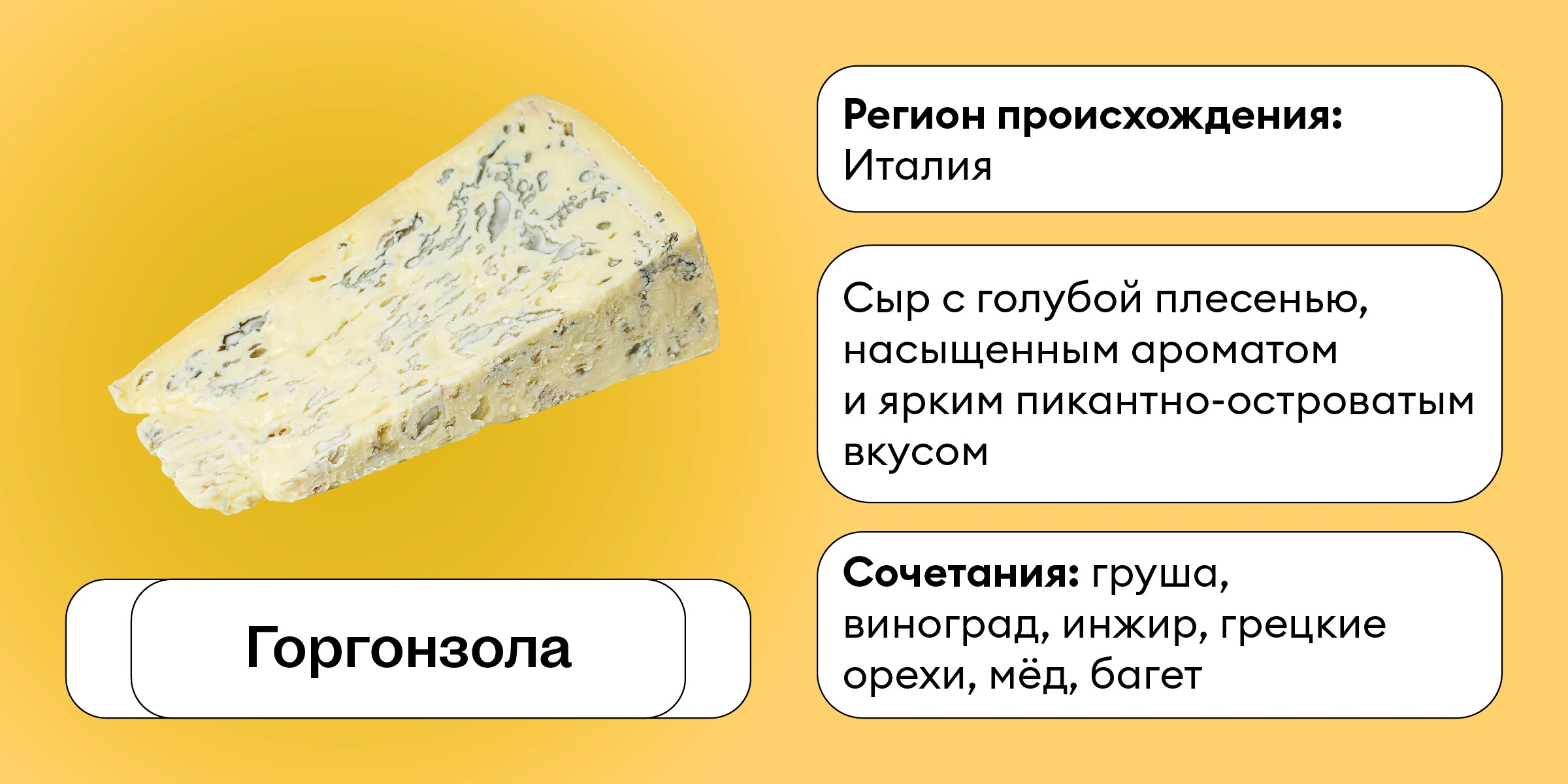 А теперь из Франции сразу в Италию! Здесь вас встретит горгонзола — знаменитый итальянский сыр с плесенью.