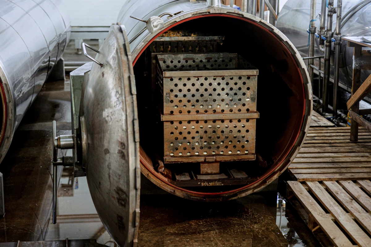 После стерилизации баночки с готовой икрой будут находиться некоторое время в прохладном помещении. Все приключения, которые возможны с продукцией (потемнение, расслоение, сорвёт крышку и т.д.), произойдут именно за этот срок. А уже после на банки с готовой продукцией клеят этикетки, упаковывают в транспортную тару, и её можно везти на полки в магазины.
