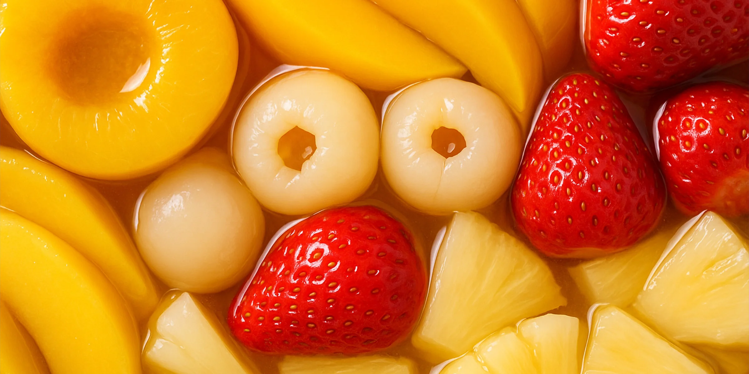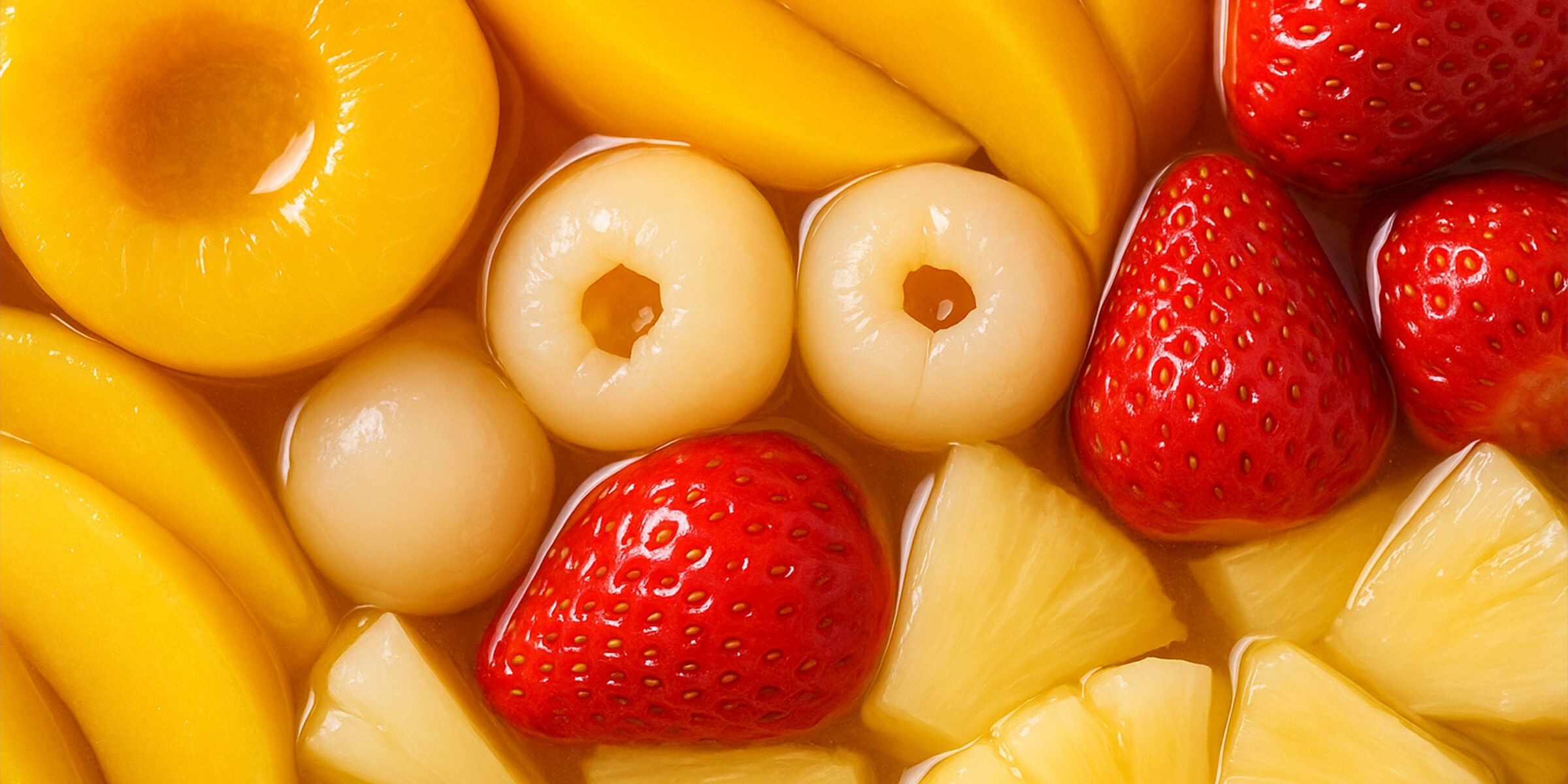Чем короче состав — тем лучше. Если для вас важна калорийность продукта, можно выбирать варианты с пометками «в собственном соку» и «без добавленного сахара». Или перед употреблением смыть густой сироп под проточной водой при его наличии.