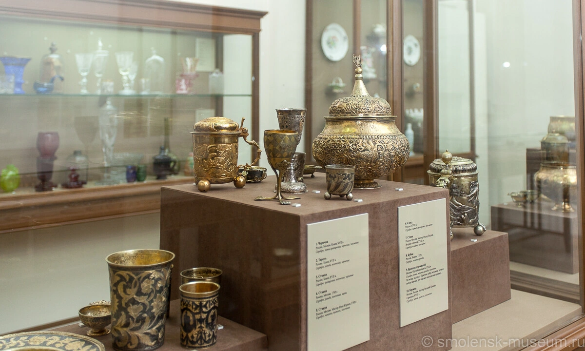 В «Русской старине» выставлена часть богатейшей коллекции, составленной княгиней Марией Клавдиевной Тенишевой. В 1907 году это собрание произвело фурор в Лувре: посетители Всемирной выставки угощались смоленскими конфектами (о них чуть ниже) и разглядывали потрясающие эмали, скань, золотное шитьё, резьбу по дереву и кости — сплошной magnifique. Сегодня на это можно любоваться без «шенгена»: